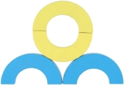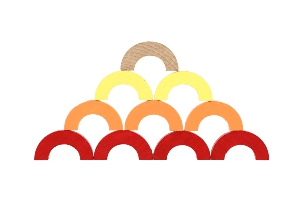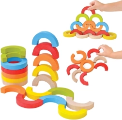 Varavīksnes lokus un puslokus var salikt torņos, tiltā un līdzsvara izaicinājumos. Bērni tā attīsta koncentrēšanos, stabilitāti un telpisko uztveri.