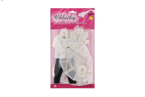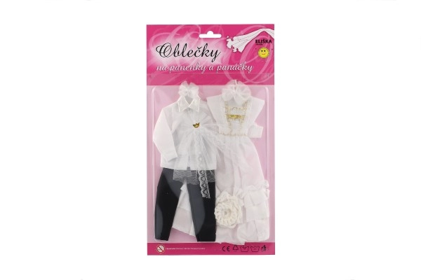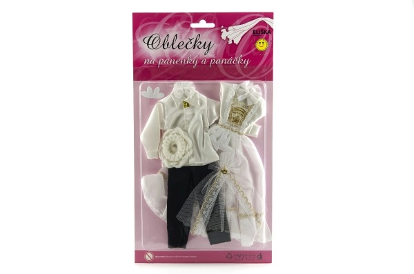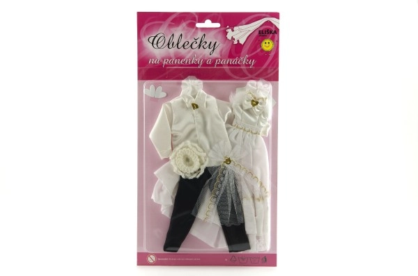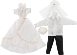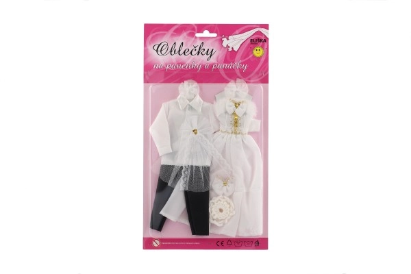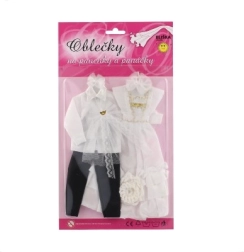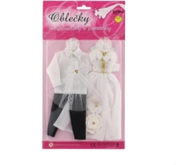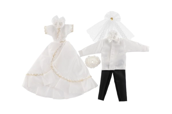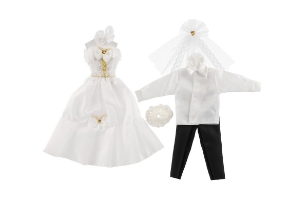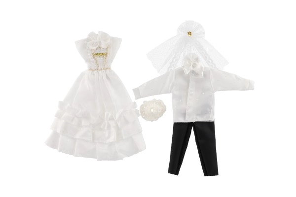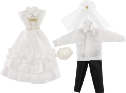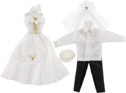 Sagatavojiet savas lelles pasaku kāzām ar šo reālistisko kāzu apģērbu komplektu, kurā iekļautas līgavas kleitas un līgavaiņa uzvalks.
