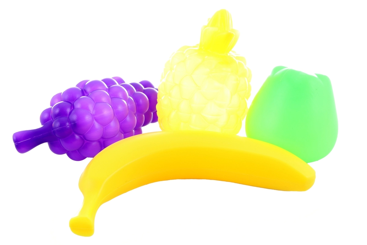 Komplektā ietilpst iecienīti augļu veidi spilgtās krāsās, kas mudina uz spēli un palīdz bērniem jautrā veidā apgūt krāsas un formas.