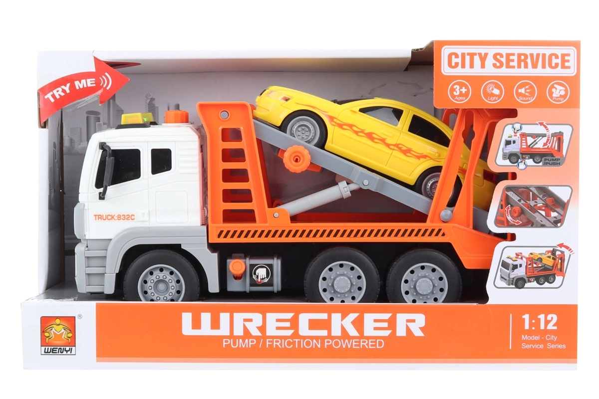 Izklaidējošs plastmasas auto pārvadātājs mērogā 1:12 iepriecinās mazos vadītājus no 3 gadu vecuma. Nospiežot pogu, tas izdala reālistiskas skaņas un spīd, darbināšanu nodrošina 3× AG13/LR44 baterijas komplektā. Ideāla rotaļlieta iztēles un motorikas attīstīšanai.