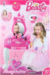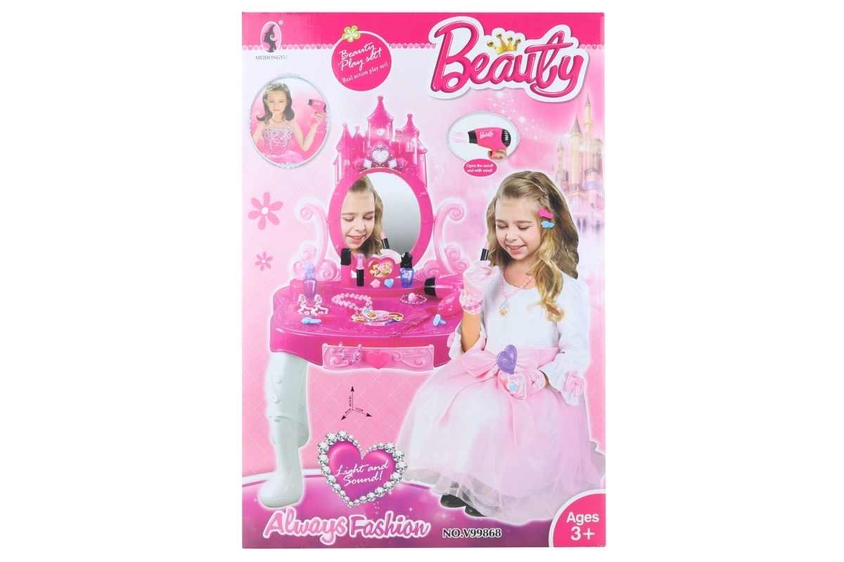 Ar vienu pogas pieskārienu galds iedegas un sāk atskaņot melodiju, kas piešķir rotaļai autentiskumu. Komplektā ietilpst arī ērts plastmasas krēsliņš. Viss, kas jūsu bērnam nepieciešams skaistumkopšanas spēlei, ir nodrošināts!