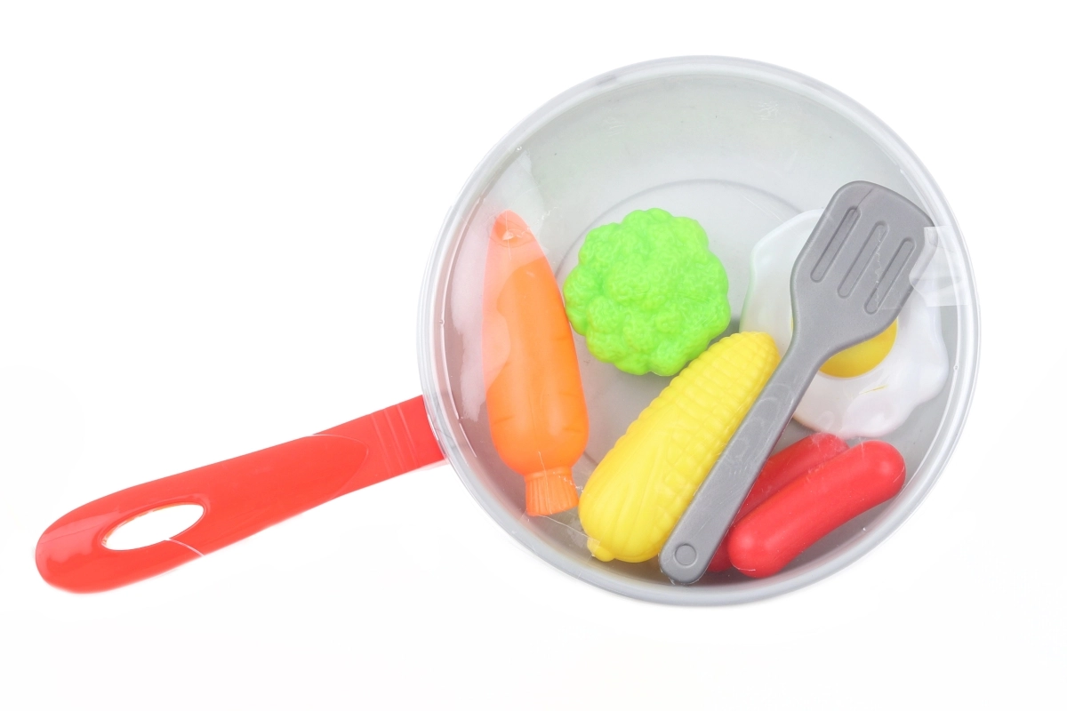 Šis rotaļīgs bērnu virtuves komplekts ietver visu nepieciešamo pirmajai “gatavošanai” – plastmasas pannu, ērtu lāpstiņu un 5 pārtikas elementus. Pateicoties kompaktajiem izmēriem, to ērti turēt arī mazākām rociņām, un tas sniedz daudz prieka, atdarinot gatavošanu.