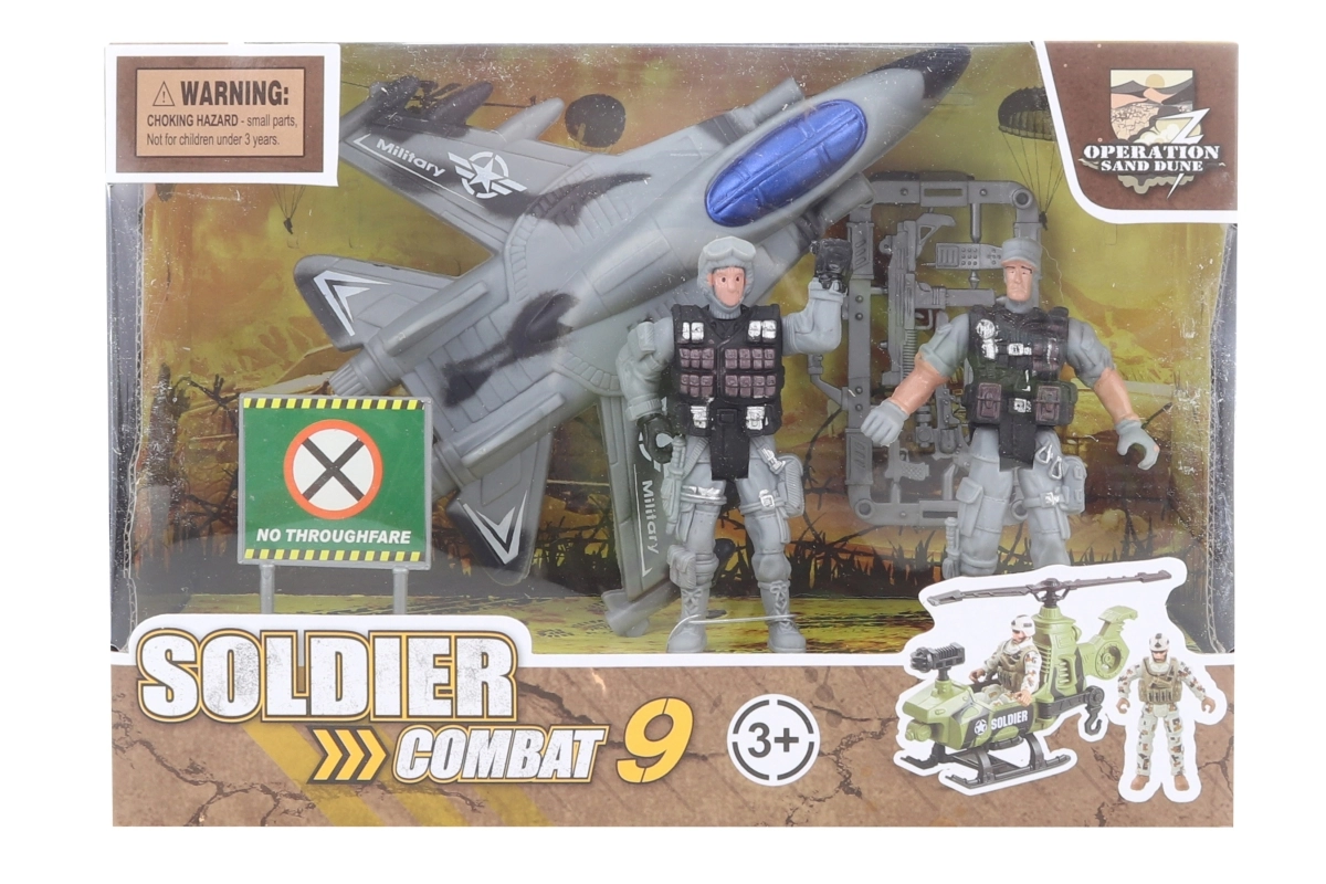 Militārā spēļu komplekts ir ideāls mazajiem kareivīšu un iznīcinātāju cienītājiem. Komplektā ir divas karavīru figūriņas, iznīcinātājs un citi aizraujoši piederumi.