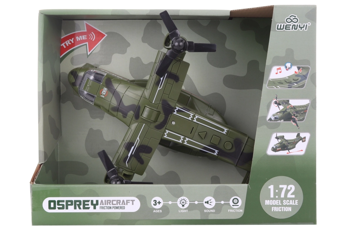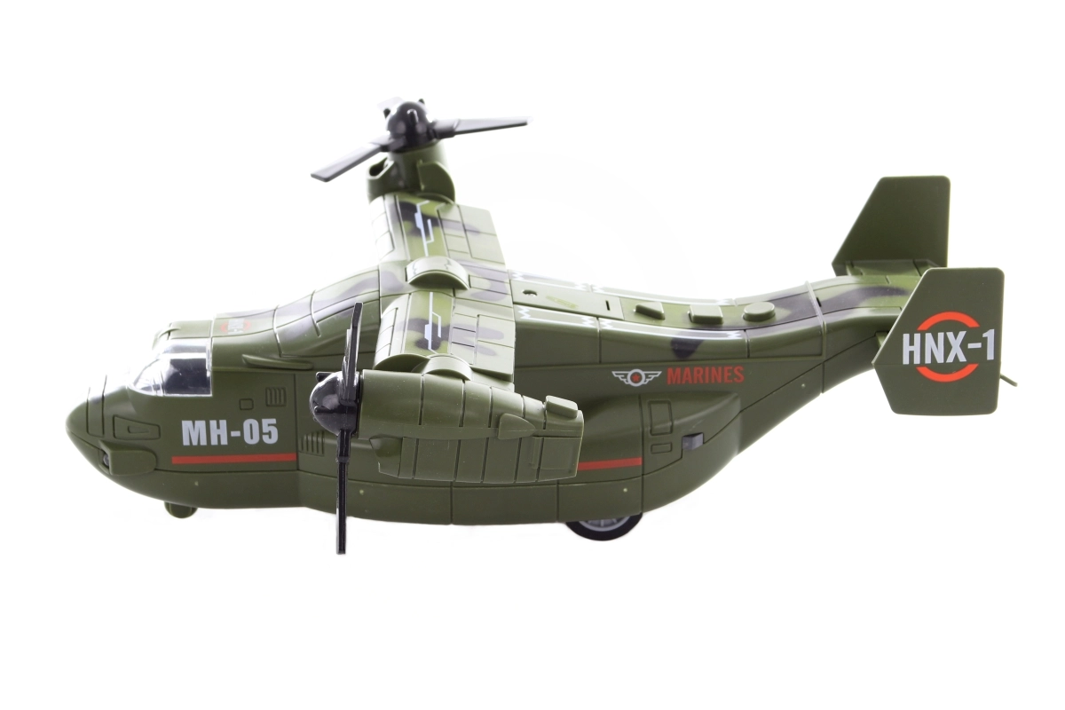Šī plastmasas militārā lidmašīna ir lieliska izvēle bērniem, kuri mīl armijas tehniku un dinamiskus stāstus. Pēc pogu nospiešanas aktivizējas skaņas un gaismas efekti, kas veicina iztēli un pilnībā ievelk spēlē. Pateicoties izturīgajai konstrukcijai, tā ir piemērota ikdienas lietošanai.