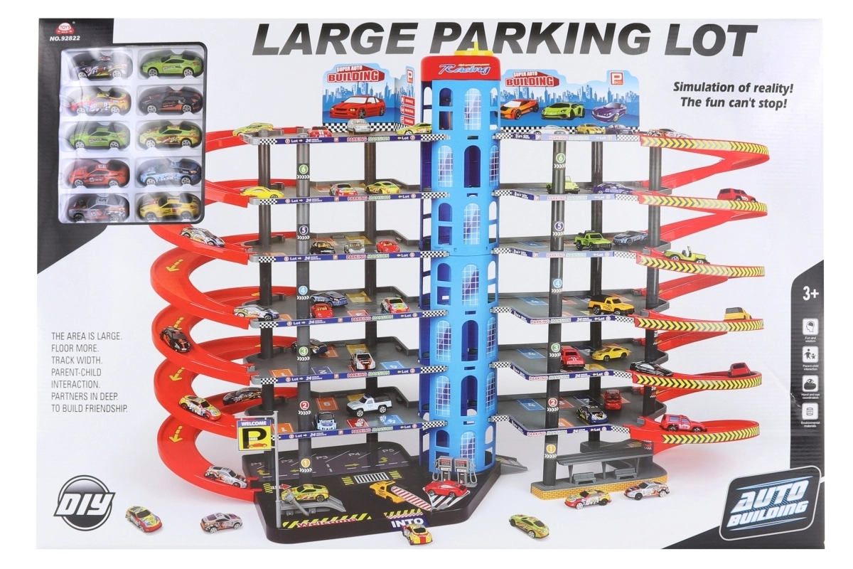 Šī plašā un izturīgā garāža piedāvā sešus darbības pilnus stāvus, kuros bērni var novietot automašīnas, sacensties un izdomāt savus stāstus. Pateicoties komplektā iekļautajām 10 mašīnītēm, komplekts ir pilnīgs un gatavs tūlītējai spēlei.