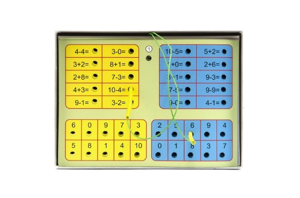 Kastītē atradīsiet plašu uzdevumu komplektu saskaitīšanai un atņemšanai līdz 20. Elektroniskais korpuss ar gaismas kontroli nodrošina tūlītēju atgriezenisko saiti bez burtnīcām vai zīmuļiem. Darbībai nepieciešamas 2× AA baterijas (nav iekļautas komplektā).