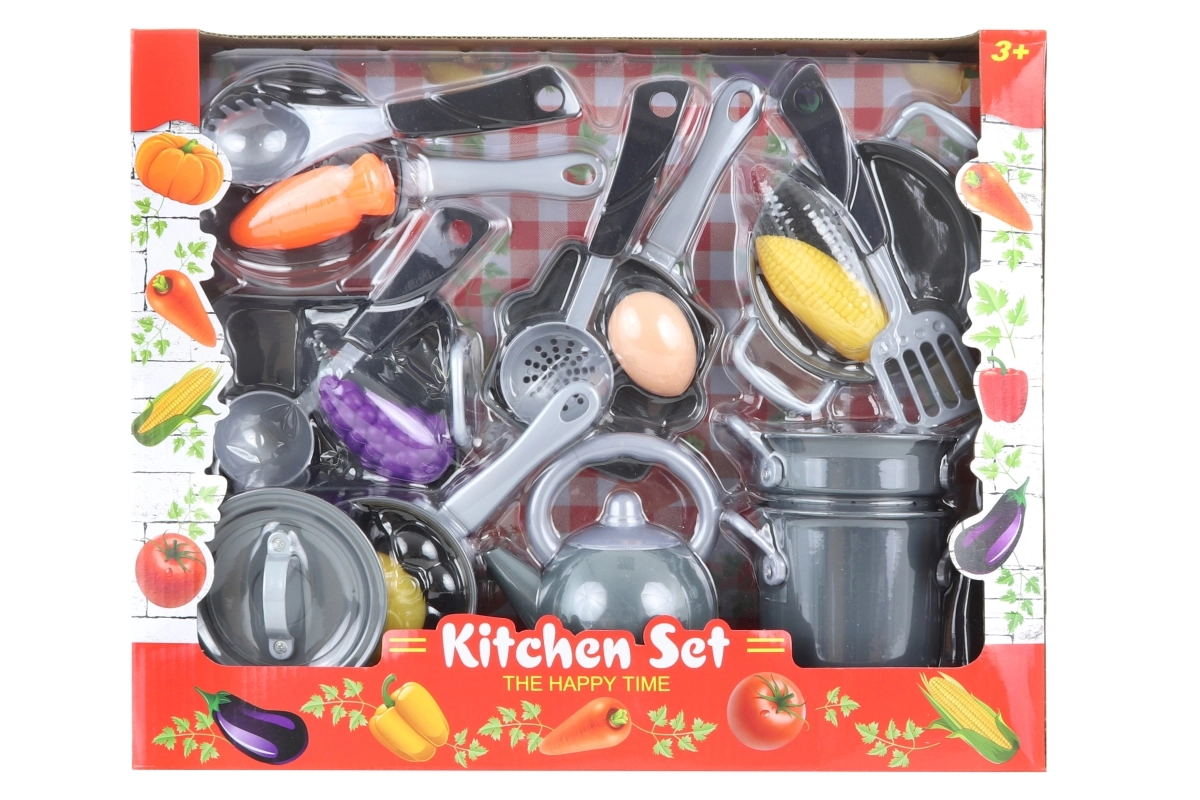 Pilns bērnu virtuves komplekts mazajiem pavāriem nodrošina visu radošai spēlei. Ietver katliņu ar vāku, katlu ar sietiņu, tējkannu, cepamtrauku, pannas, vokpannu un citus piederumus, kā arī pārtikas maketus. Ideāli bērniem no 3 gadu vecuma. Veicina iztēli, lomu spēles un sīko motoriku.