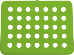 Stabila pamatne ar izteiktiem caurumiem palīdz bērniem precīzi ievietot tapas un uzlabo acu–roku koordināciju.