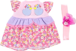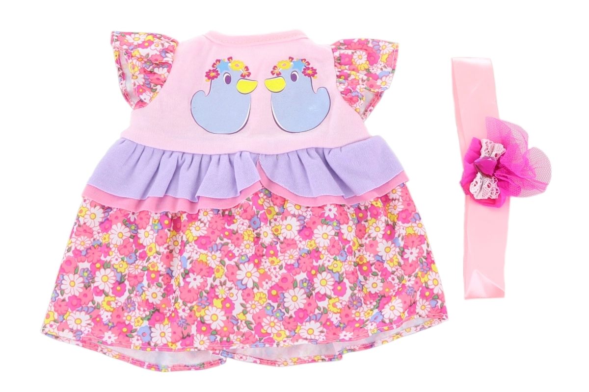 Iedodiet iemīļotajai lellei jaunu stilu. Šī kleitiņa ir paredzēta 40–45 cm lielām lellēm un izceļas ar mīlīgām detaļām, piemēram, volāniem, bantītēm un jaukiem apdrukas motīviem. Pateicoties ērtajam piegriezumam un vienkāršai aizdarei, ar pārģērbšanu tiks galā pat mazāki bērni.