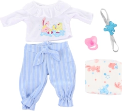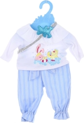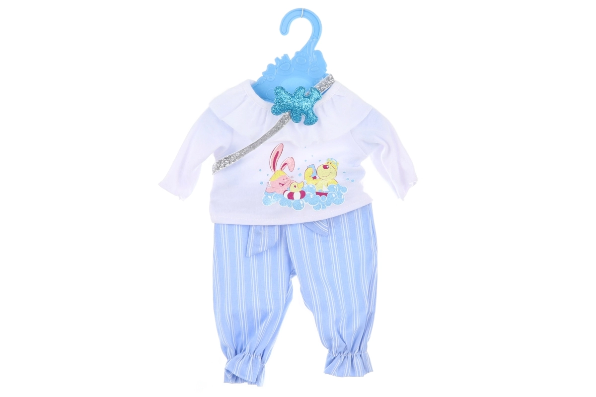 Stilīgs apģērbs lellei ar izmēru 45 cm, ideāls ikdienas rotaļām un īpašiem notikumiem. Palīdz attīstīt bērnu fantāziju, sīko motoriku un rūpes par lelli. Kvalitatīvs izpildījums un viegla apģērbšana garantē prieku katrā spēlē.
