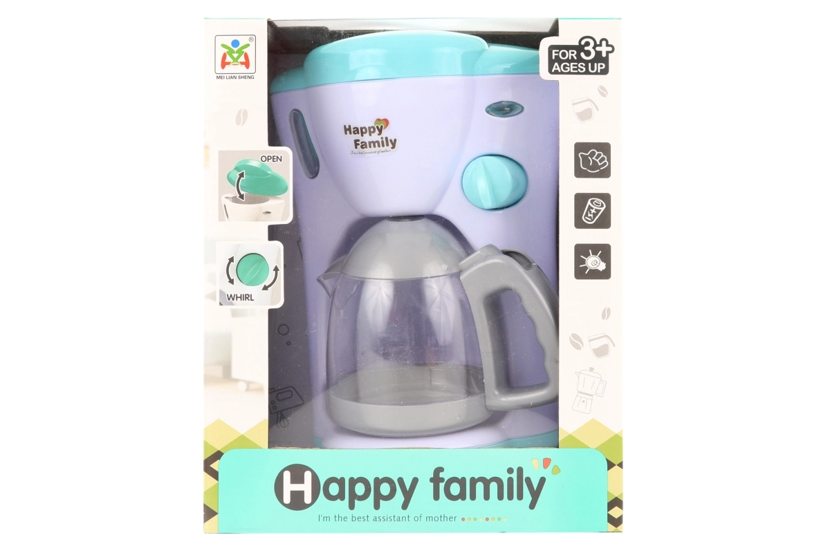Izklaidējošs plastmasas bērnu kafijas automāts ar baterijām sniedz bērniem reālistisku kafijas pagatavošanas pieredzi. Ierīce spīd un izdod skaņas kā īsts kafijas automāts, tāpēc tā ir ideāli piemērota mājspēlēm. Darbojas ar 2× AA baterijām (nav iekļautas komplektā). Piemērots bērniem no 3 gadu vecuma.