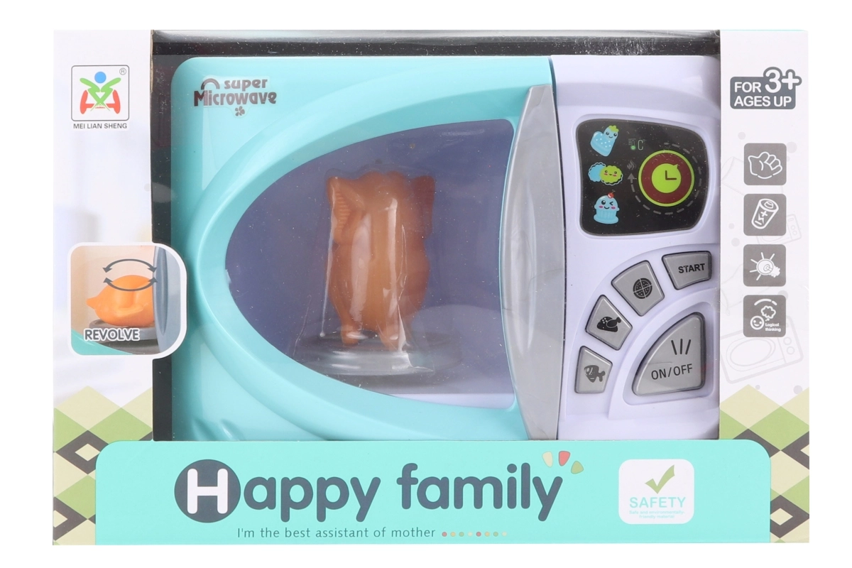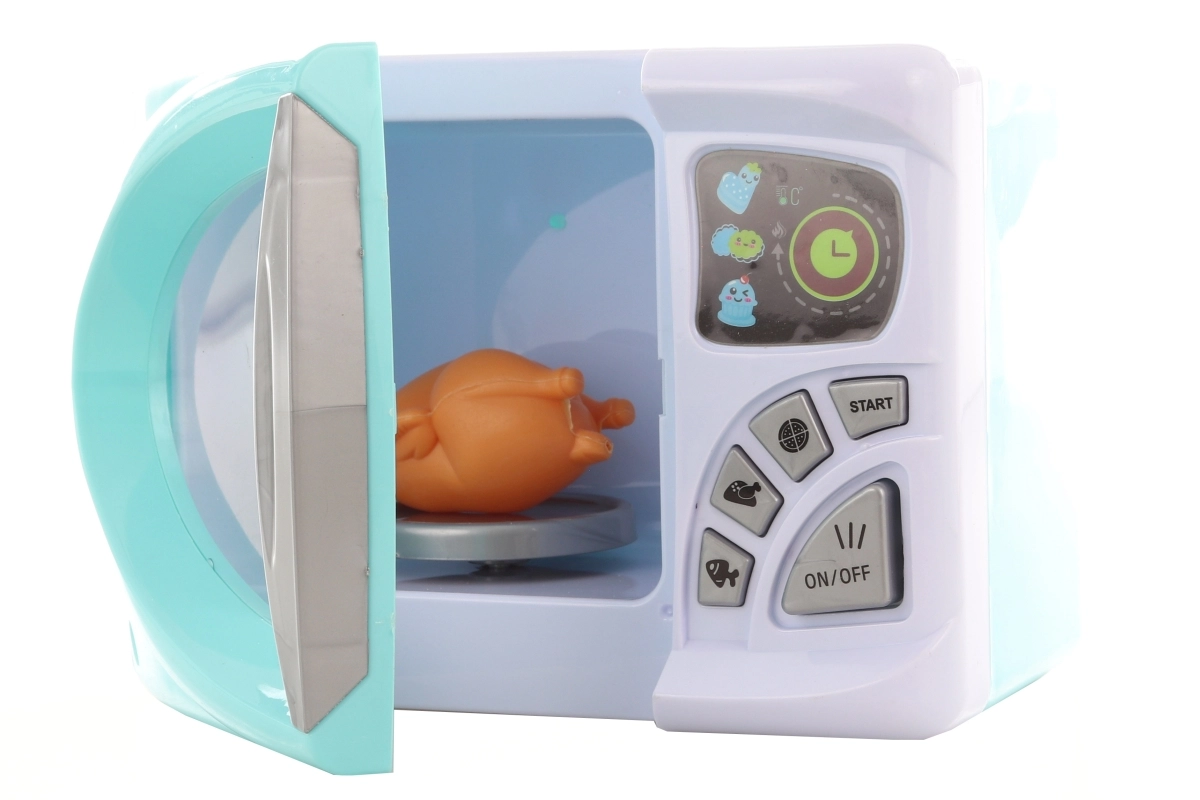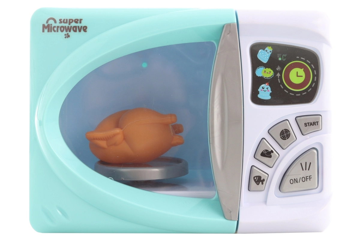 Šī bērnu mikroviļņu krāsns tirkīza un baltā krāsā ir lielisks papildinājums jebkurai bērnu virtuvei. Ieslēdzot šķīvis iekšpusē griežas, bet spēli papildina gaismas efekti, kas uzticami atdarina īstu ierīci.