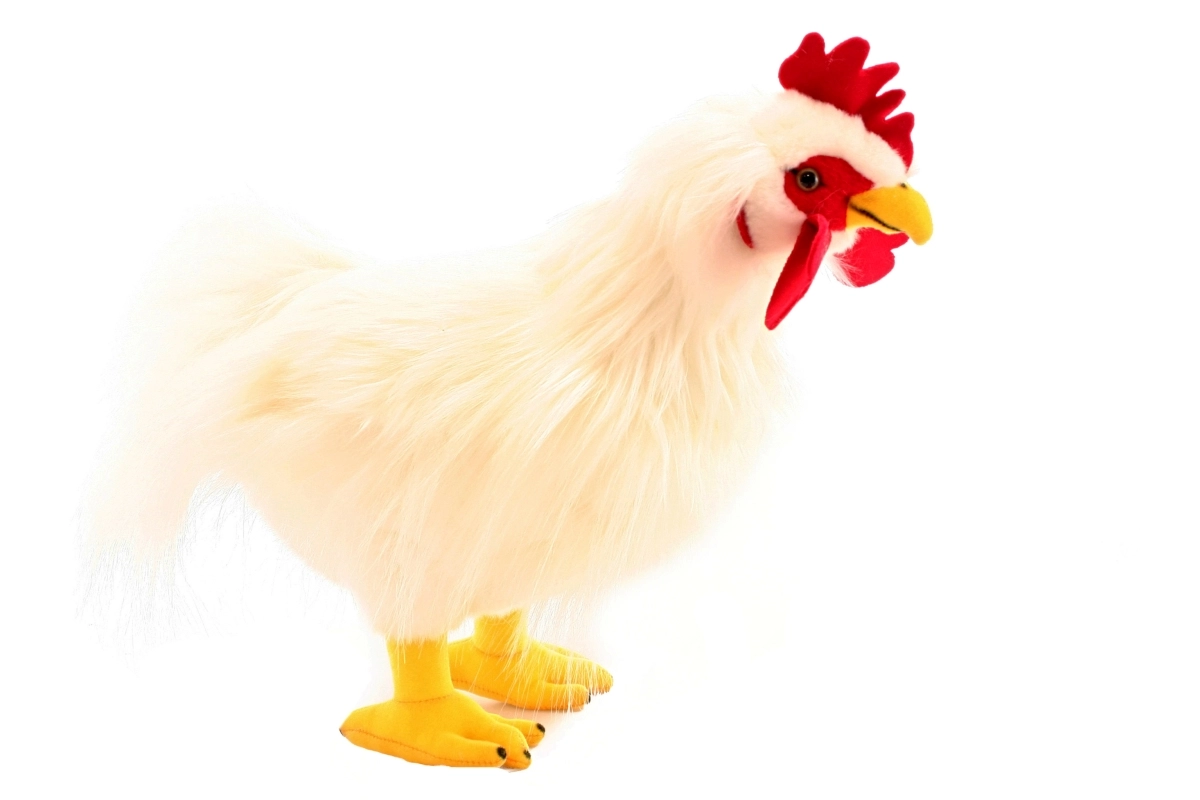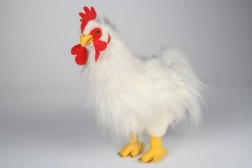 Jautrs kompanjons jūsu bērniem, pūkains balts gailis 42 cm izmērā, piemērots visiem bērniem no dzimšanas.
