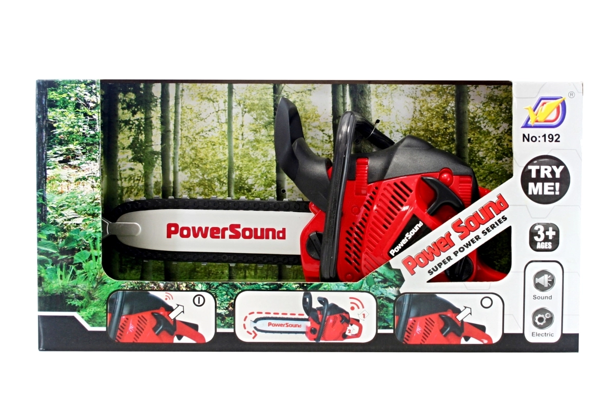 Reālistisks bērnu akumulatora motorzāģis mazajiem mežstrādniekiem piedāvā izklaidi un drošu iepazīšanos ar pieaugušo darbarīkiem. Tam ir divi darbības režīmi ar iedarbināšanas un motora darbības skaņām un kustīgu ķēdi. Kompakti izmēri aptuveni 35 × 13 cm, darbināms ar 3× AA baterijām, ieteicams no 3 gadu vecuma.