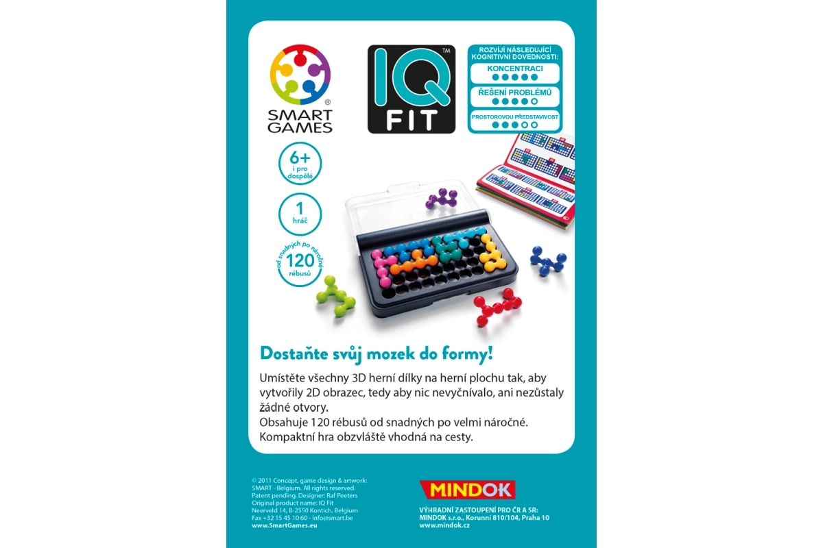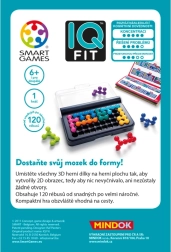 Izaicini savas smadzeņu vijumu ar galda spēli IQ Fit no SMART GAMES. Šī kompaktā loģiskā spēle vienam spēlētājam piedāvā 120 uzdevumus no vienkāršiem līdz sarežģītiem un attīsta loģisko domāšanu, telpisko iztēli, koncentrēšanos un plānošanu. Ideāli piemērota gan bērniem, gan pieaugušajiem – mājās, ceļā vai skolā.