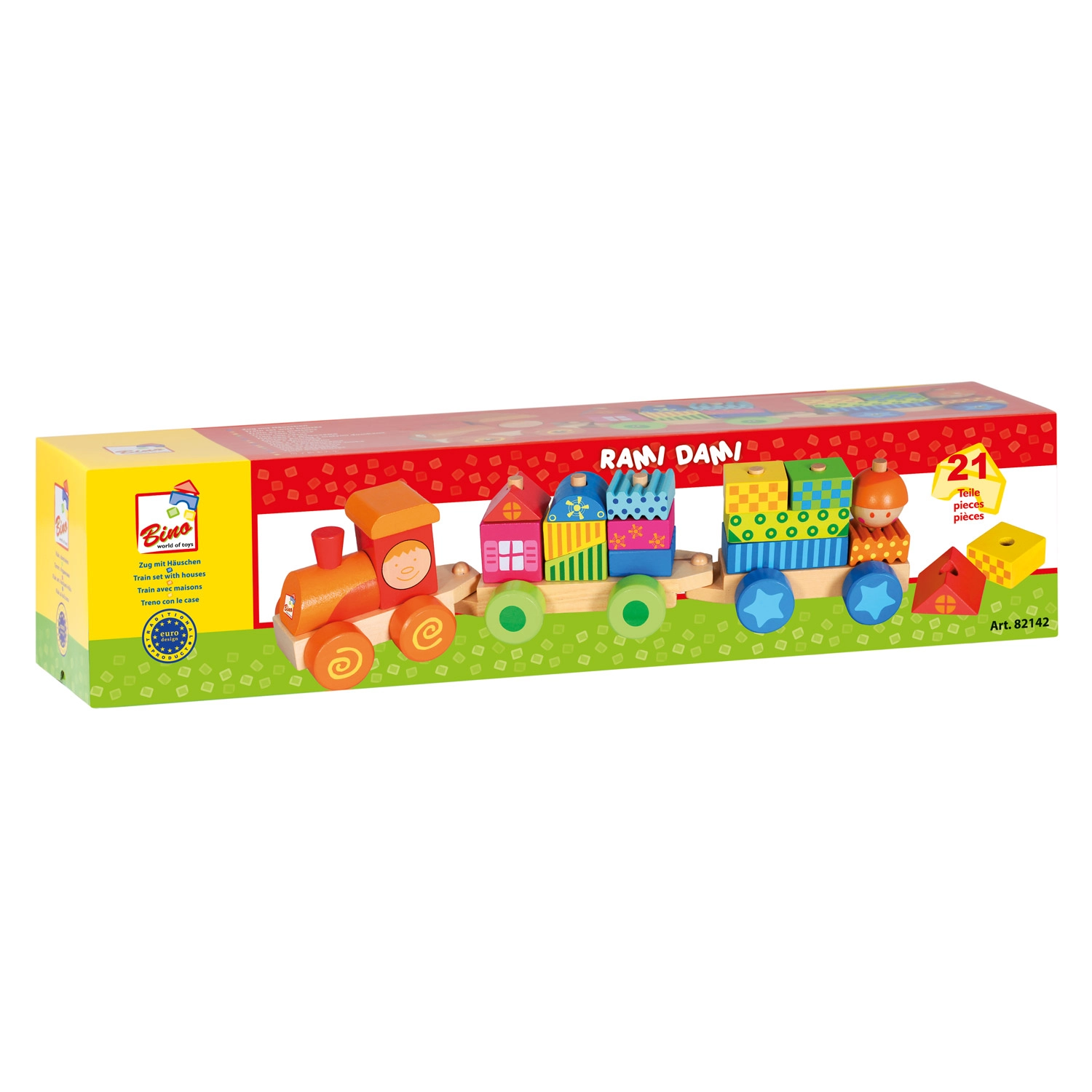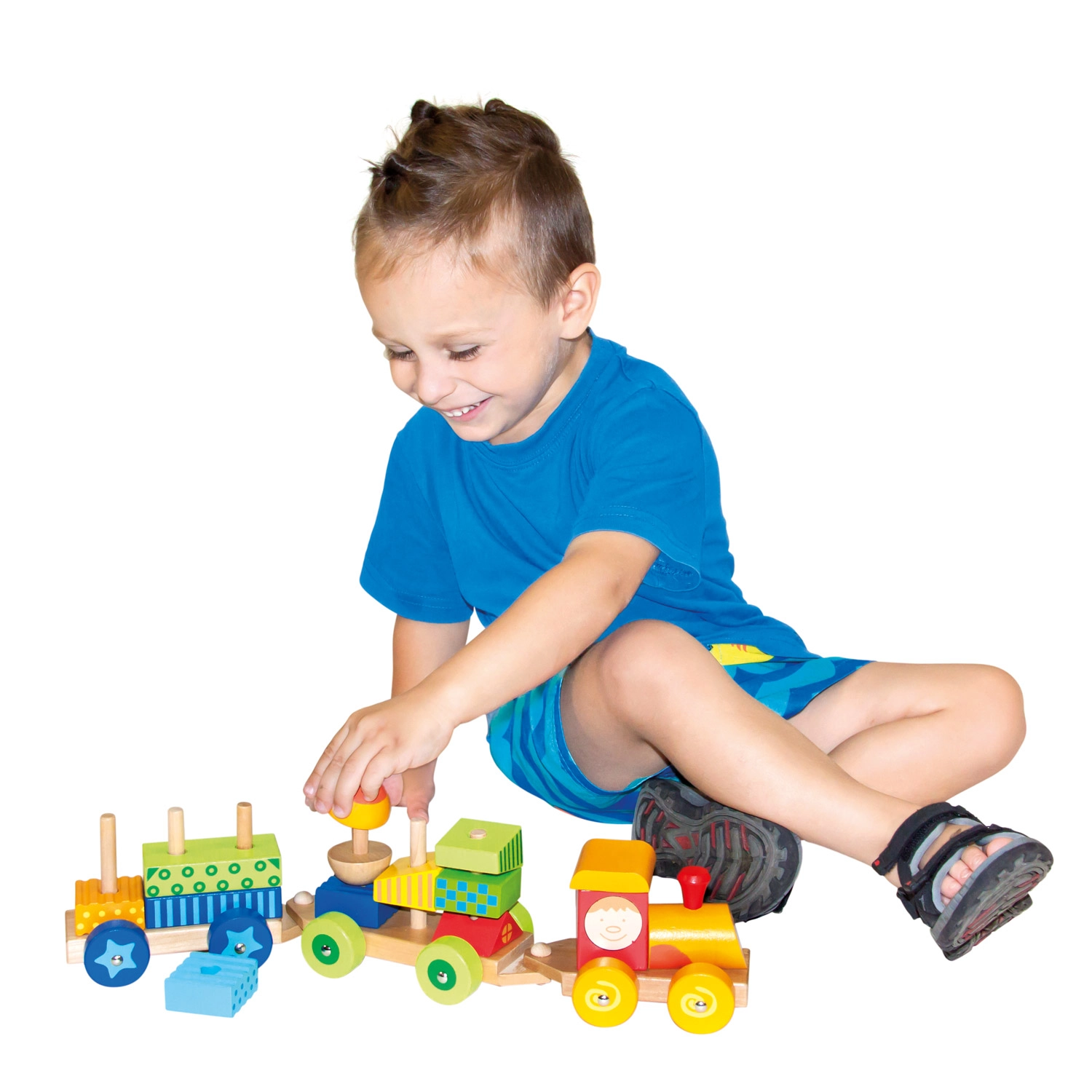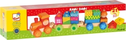 Multifunkcionālais koka vilcieniņš ir ne tikai velkamā rotaļlieta, bet arī konstruktors, kas bērniem ļauj attīstīt radošumu. Komplektā ir trīs šasijas un 18 dažādi klucīši, kurus var salikt pēc savas fantāzijas.