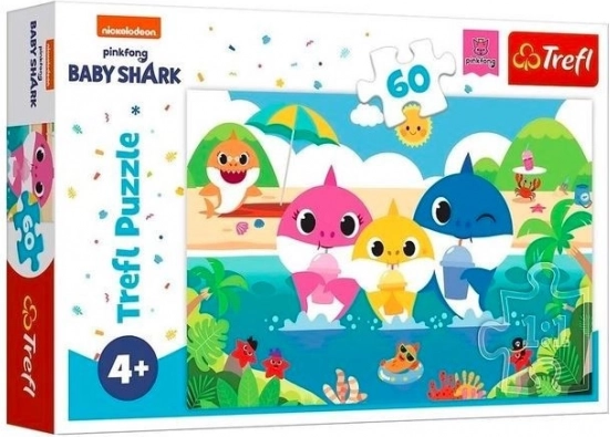 Puzle Baby Shark – Haizivju ģimenīte atvaļinājumā, 60 gabaliņi (33 × 22 cm)