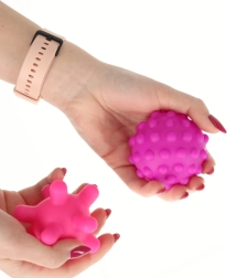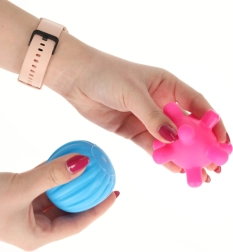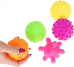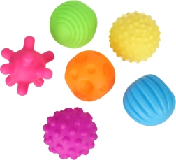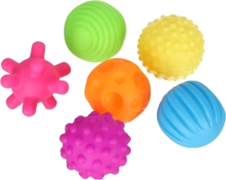Katrai bumbiņai ir unikāla virsma (mazie un lielie izcilņi, rievotas līnijas, gropes, “ezītis”), kas veicina tausti un bērna ziņkāri.