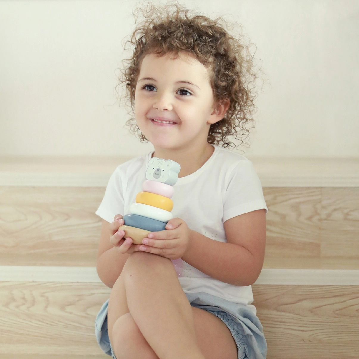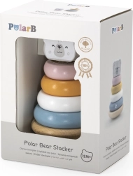 Koka izglītojošā piramīda ar Polārlāča motīvu ir ideāla rotaļlieta pašiem mazākajiem. Piramīdai ir seši gredzeni dažādos izmēros un krāsās, tostarp viens galvenais gredzens ar lāča galvu. Pateicoties izturīgajai koka konstrukcijai, rotaļlieta ir ne tikai droša, bet arī izturīga.