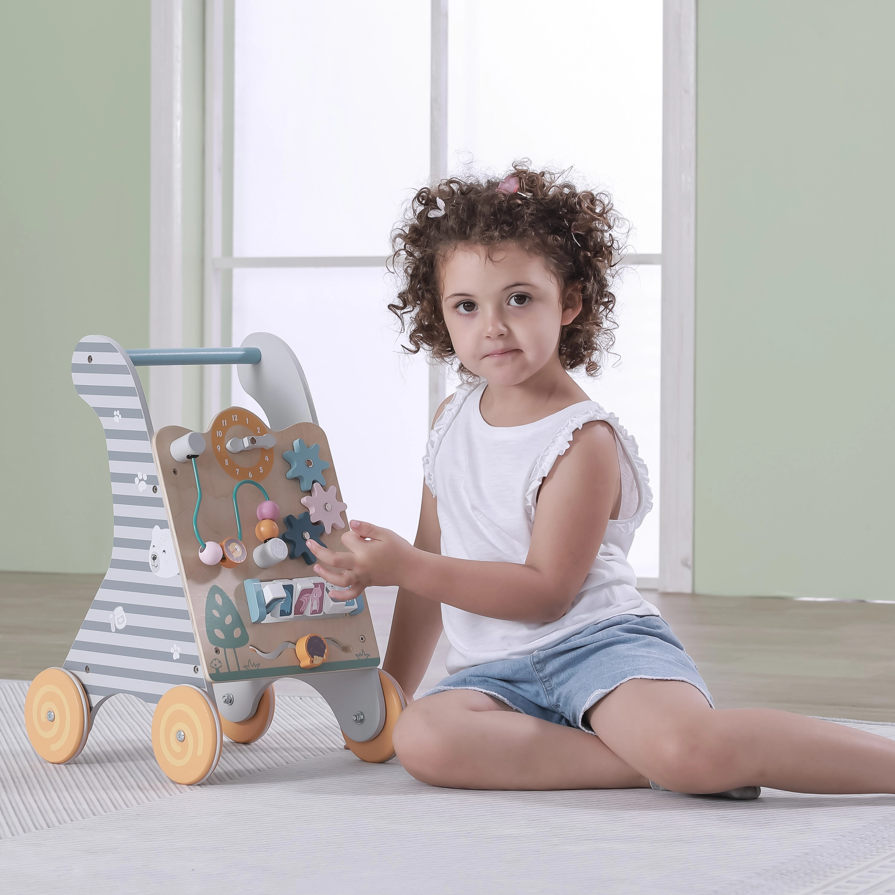 Koka izglītojošais staigulis no Viga Toys ir lielisks rīks motorikas un kognitīvo prasmju attīstīšanai bērniem no 18 mēnešu vecuma. Multifunkcionālais dizains apvieno stabilu staiguli un interaktīvu mācību paneli, kas māca bērniem atpazīt formas un krāsas. Pievilcīgi elementi, piemēram, zobrati, trases ar dzīvnieciņiem un sānu paneļi, notur bērna uzmanību un nodrošina izklaidi.