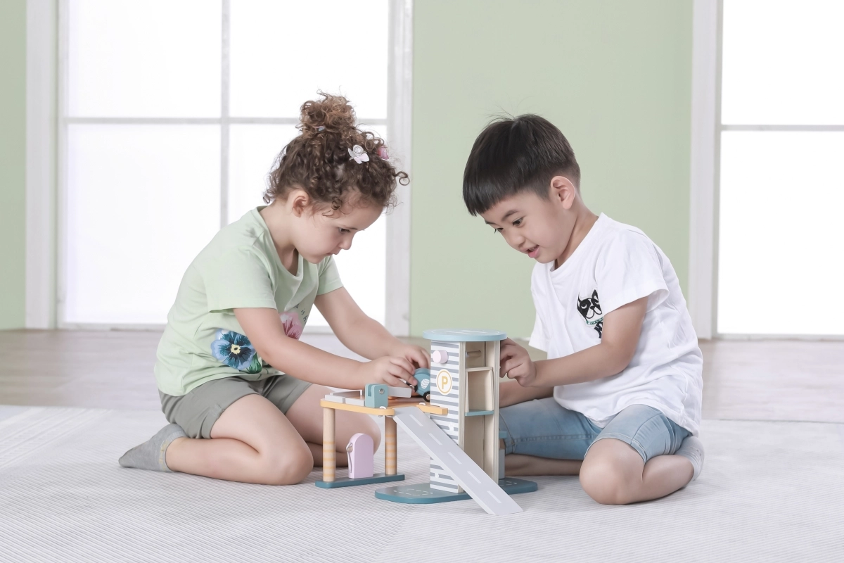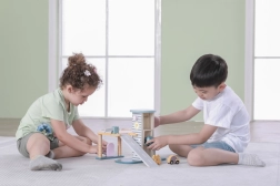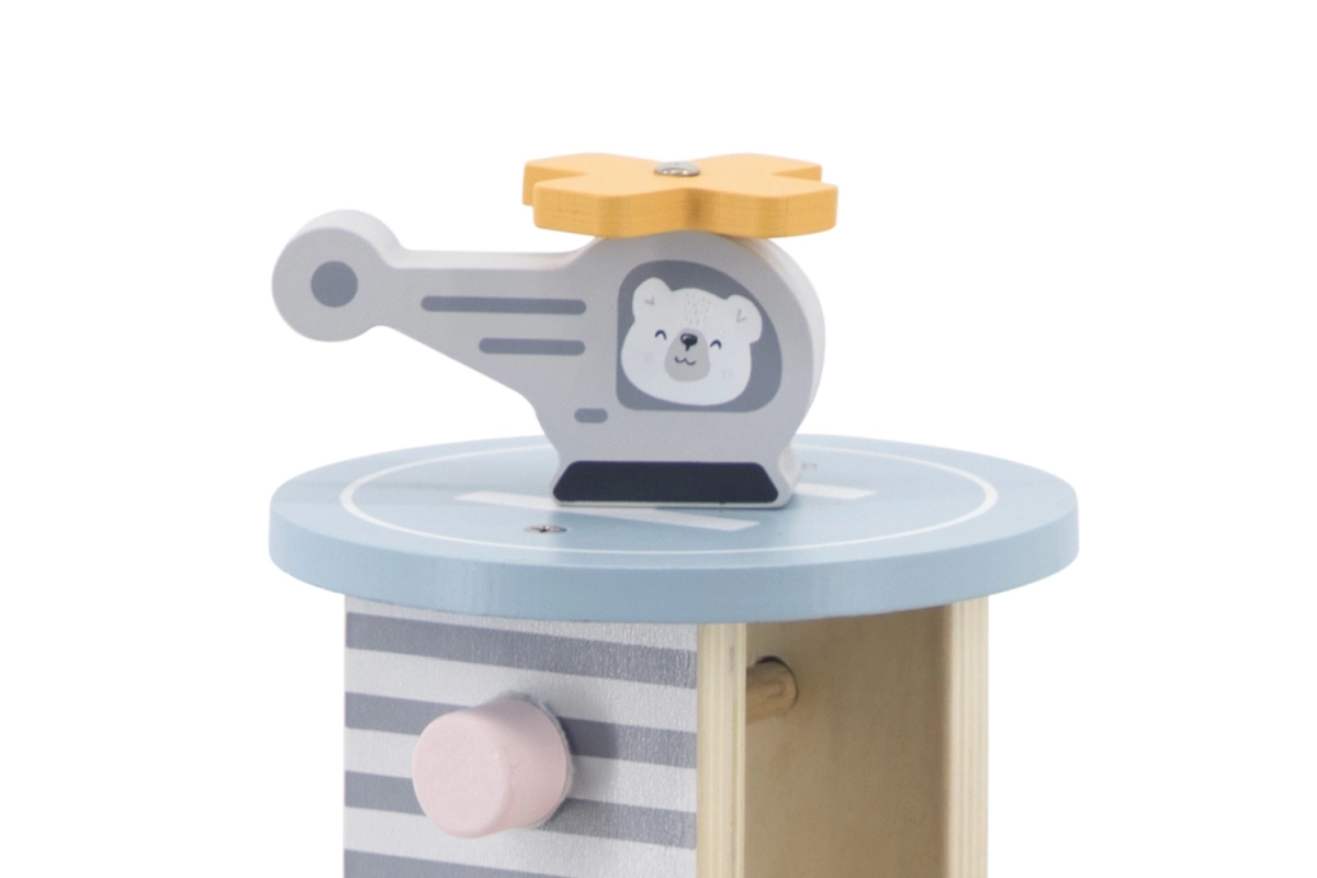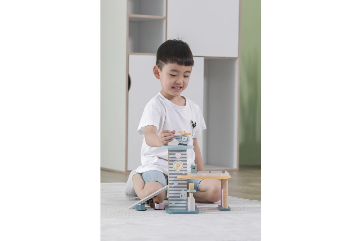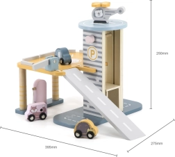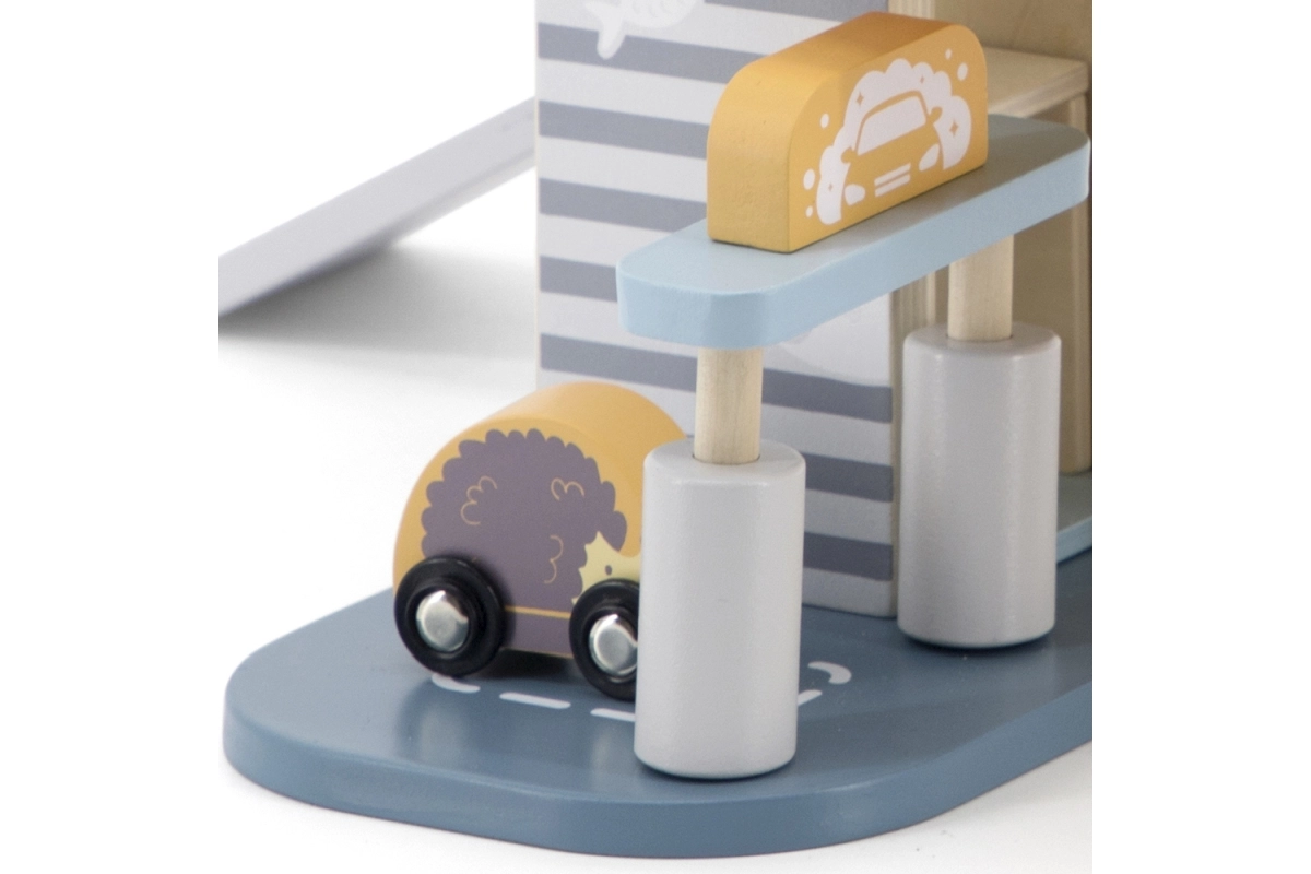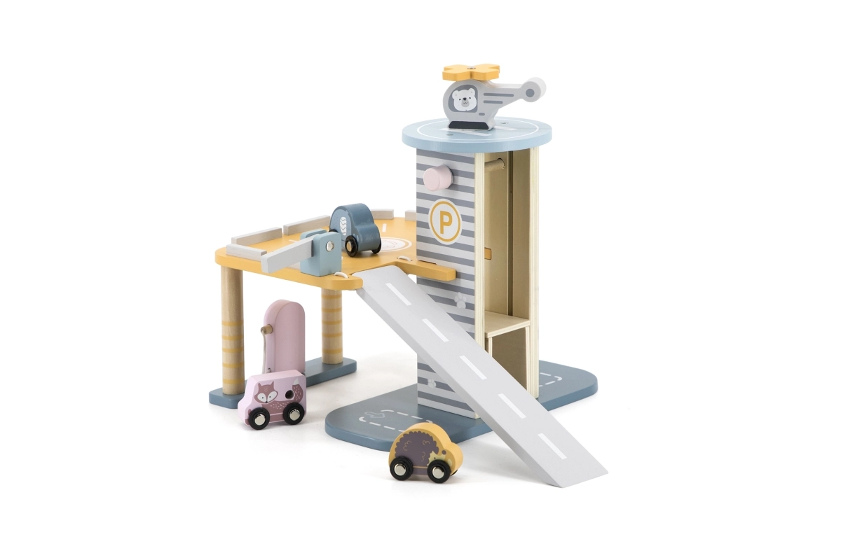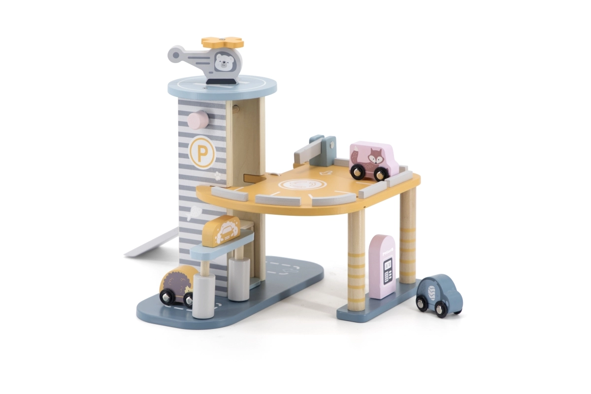 Koka garāža ar helikopteru un mašīnītēm ir lieliska rotaļlieta, kas veicina bērnu radošumu un motorikas attīstību. Šī interaktīvā rotaļlieta ir aprīkota ar automazgātavu, degvielas uzpildes staciju un liftu. Komplektā ietilpst trīs mašīnītes un viens helikopters, viss maigos toņos, kas labi iederas jebkurā bērnu istabā.