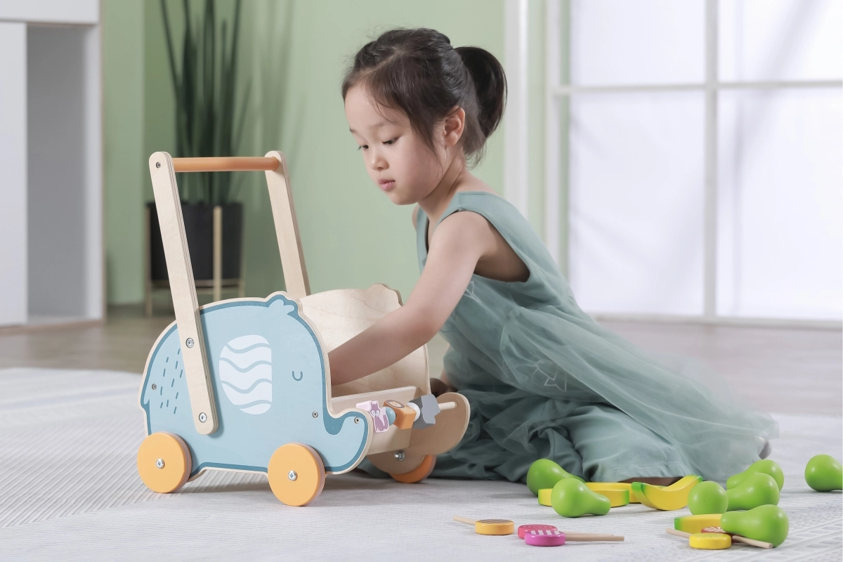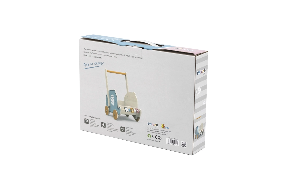 Koka staigulis un ratiņi 2in1 VIGA PolarB rotaļīgā ziloņa dizainā atbalsta pirmos soļus, pārliecību staigājot un dabisku motorikas attīstību. Izturīgā konstrukcija no kvalitatīva dižskābarža koka un ērts rokturis palīdz bērniem droši un aizraujoši trenēt līdzsvaru.
