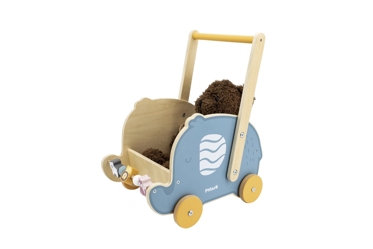 Lielā uzglabāšanas vieta ļauj vest iemīļotās rotaļlietas un mīkstās mantas, tāpēc katrs solis kļūst par piedzīvojumu. Gumijas riteņi ar pretbuksēšanas pārklājumu slāpē troksni un saudzē grīdas, padarot staiguli ideālu lietošanai mājās.