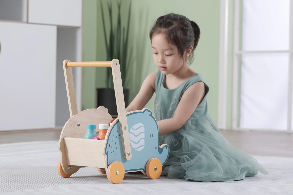Atklājiet praktisku 2in1 staiguli un ratiņus ziloņa formā no VIGA PolarB, kas palīdz bērniem pie pirmajiem soļiem. Pateicoties stabilai konstrukcijai no dižskābarža koka, pretbuksēšanas gumijas riteņiem un ietilpīgam uzglabāšanas kastei, tas attīsta līdzsvaru un rupjo un smalko motoriku jau no 12 mēnešu vecuma.