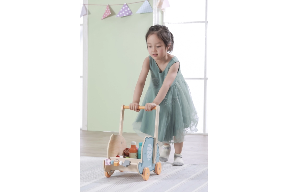 Stabila koka konstrukcija un ērts rokturis sniedz bērniem atbalstu mācoties staigāt. Tiek trenēta koordinācija, pārliecība un dabisks soļu ritms.