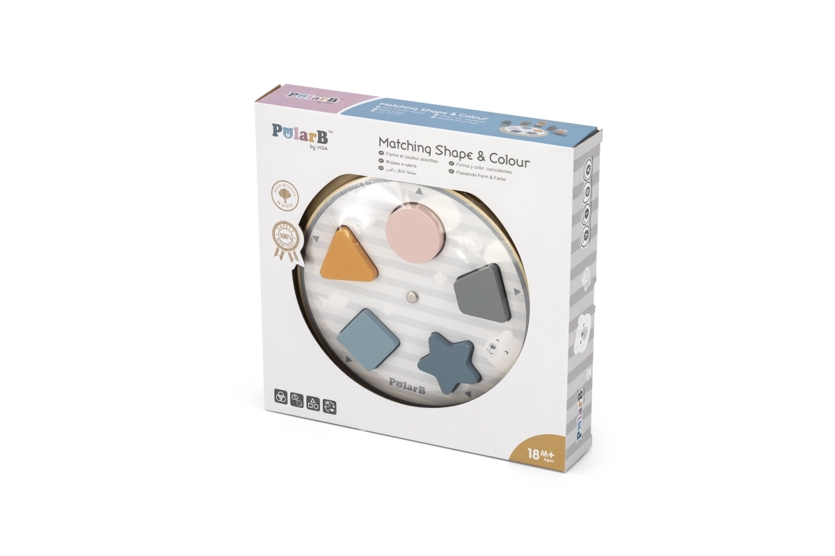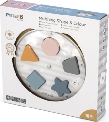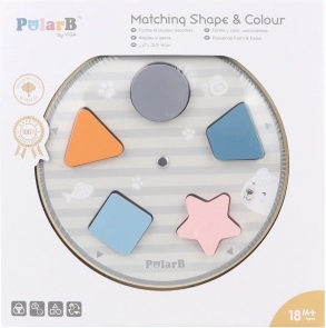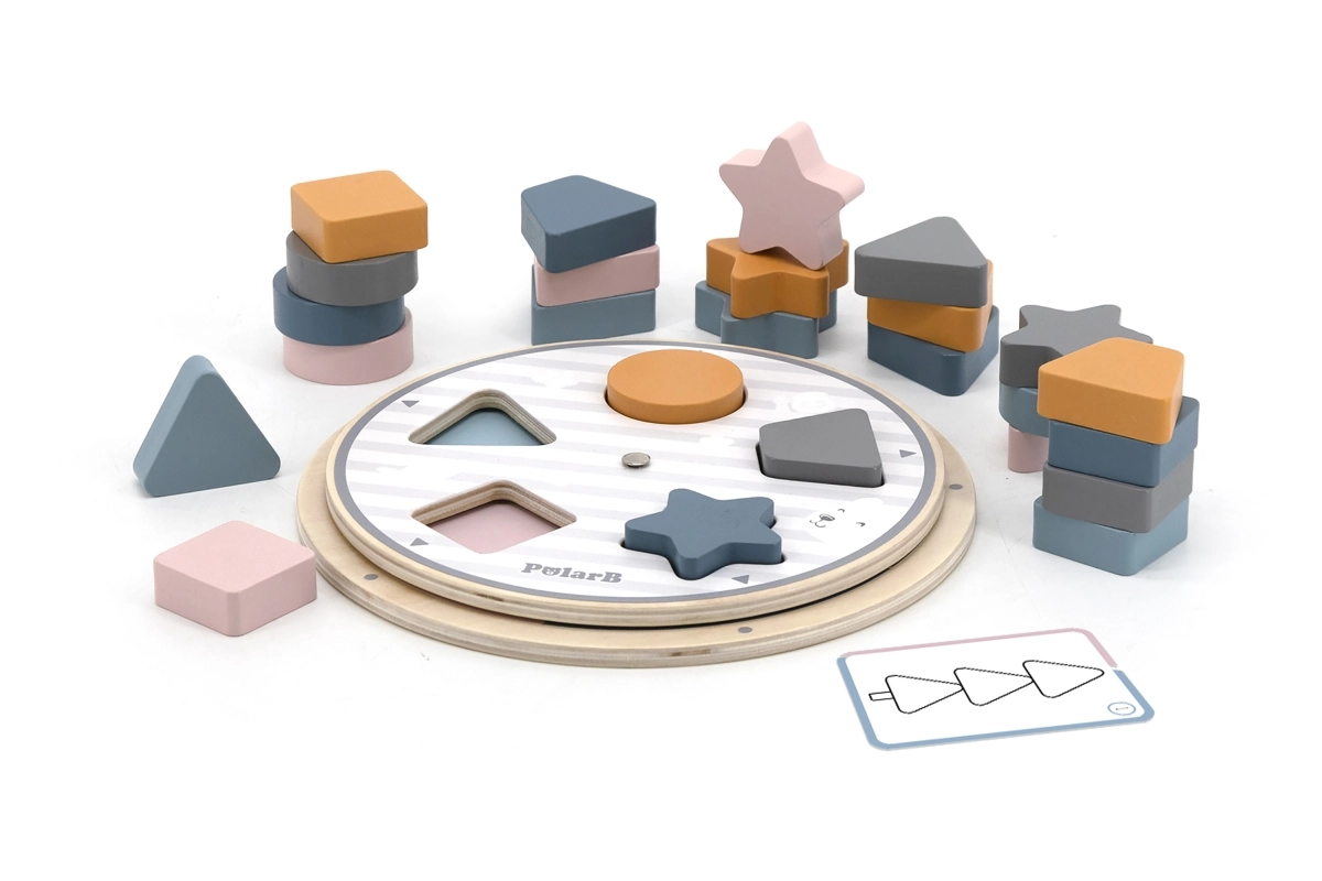 Gudra koka spēle pašiem mazākajiem, kas apvieno formu un krāsu šķirošanu, trenē sīko motoriku un loģisko domāšanu. Komplektā ir koka detaļas, rotējoša pamatne, kartītes ar paraugiem un tekstila maisiņš. Spēle no kolekcijas POLARB ir izgatavota no kvalitatīva koka, krāsota ar netoksiskām krāsām maigos pasteļtoņos un vienlaikus izklaidē, māca un attīsta bērnus jau no agrīna vecuma.