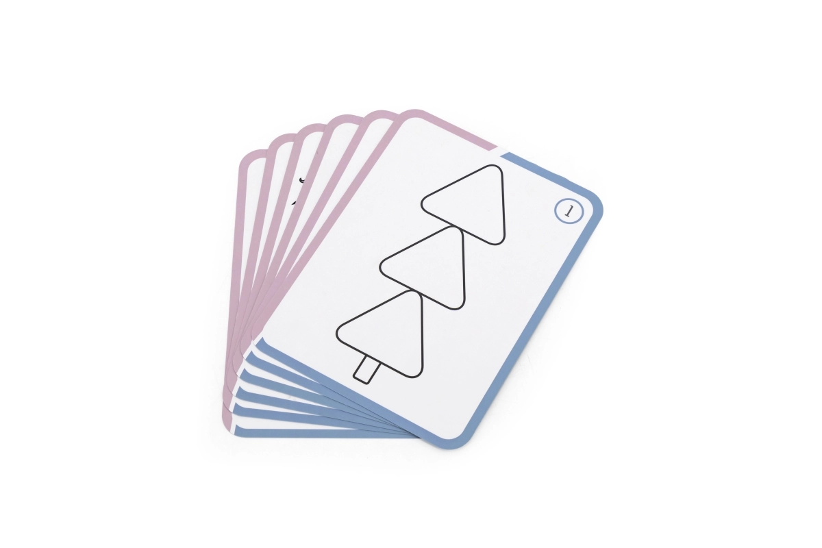 Pagriežot pamatnes augšējo daļu, mainās krāsu raksti, un ar paraugu kartītēm rodas jauni uzdevumi, kas veicina koncentrēšanos un loģiku.