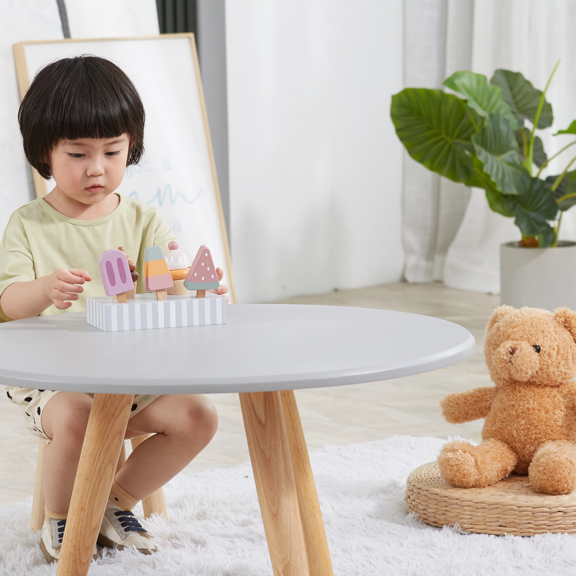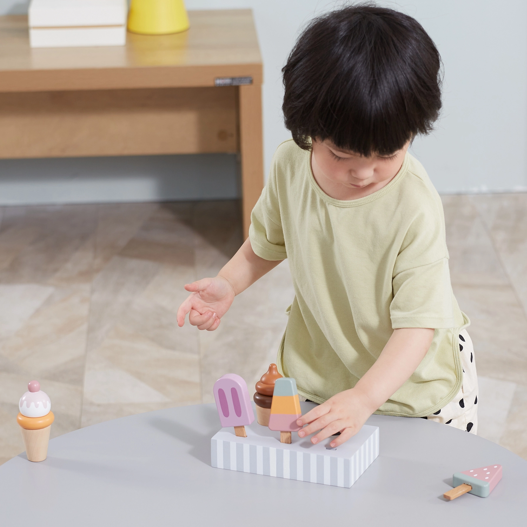 Pieci dažādi saldējumi iedvesmo bērnus lomu spēlēm, paplašina vārdu krājumu un attīsta sociālās prasmes kopīgas rotaļas laikā.