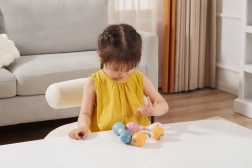 Pasteļtoņu noformējums ar lapsu iepriecinās gan bērnus, gan vecākus un lieliski iederēsies modernā bērnu aprīkojumā. Rotaļlieta atbilst CE standartiem un ir piemērota jau no dzimšanas.