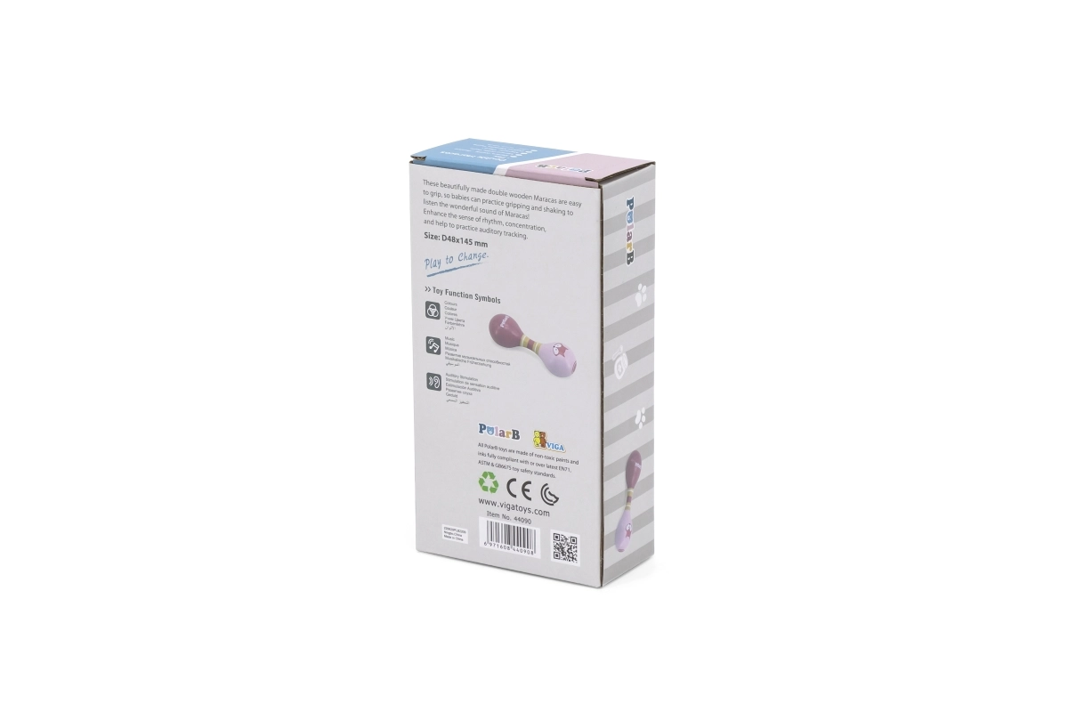 Šī kvalitatīvā koka maraka ir veidota mazām rociņām – tā ir viegla, gludi apstrādāta un ērti satverama. Pateicoties dubultajai konstrukcijai, tā rada patīkamus skaņas efektus, kas veicina sensoro attīstību, ritma uztveri un pirmo muzikālo atklāšanu.