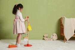 Pateicoties dažādajiem uzkopšanas rīkiem, bērni rotaļājoties pilnveido motoriku un līdzsvaru.