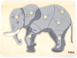 Šis skaistais koka ieliktnis ar ziloņa motīvu ir ideāli piemērots bērnu kognitīvo prasmju un sīkās motorikas attīstībai. Visām detaļām ir rokturi, kas bērniem nodrošina vieglu manipulāciju.