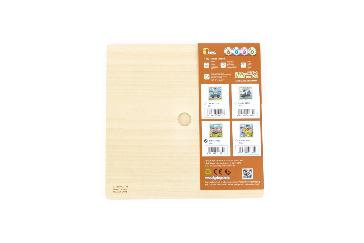 Šī koka puzle ar vilcieniņu ir izstrādāta pašiem mazākajiem bērniem, kuri tikai iepazīstas ar puzlēm. 9 lieli, kvalitatīva koka gabali ir ērti satverami un pateicoties stingrai izgatavošanai iztur ikdienas spēlēšanos. Liekot puzli, bērni vingrina smalko motoriku, acu–roku koordināciju un formu un krāsu uztveri.