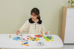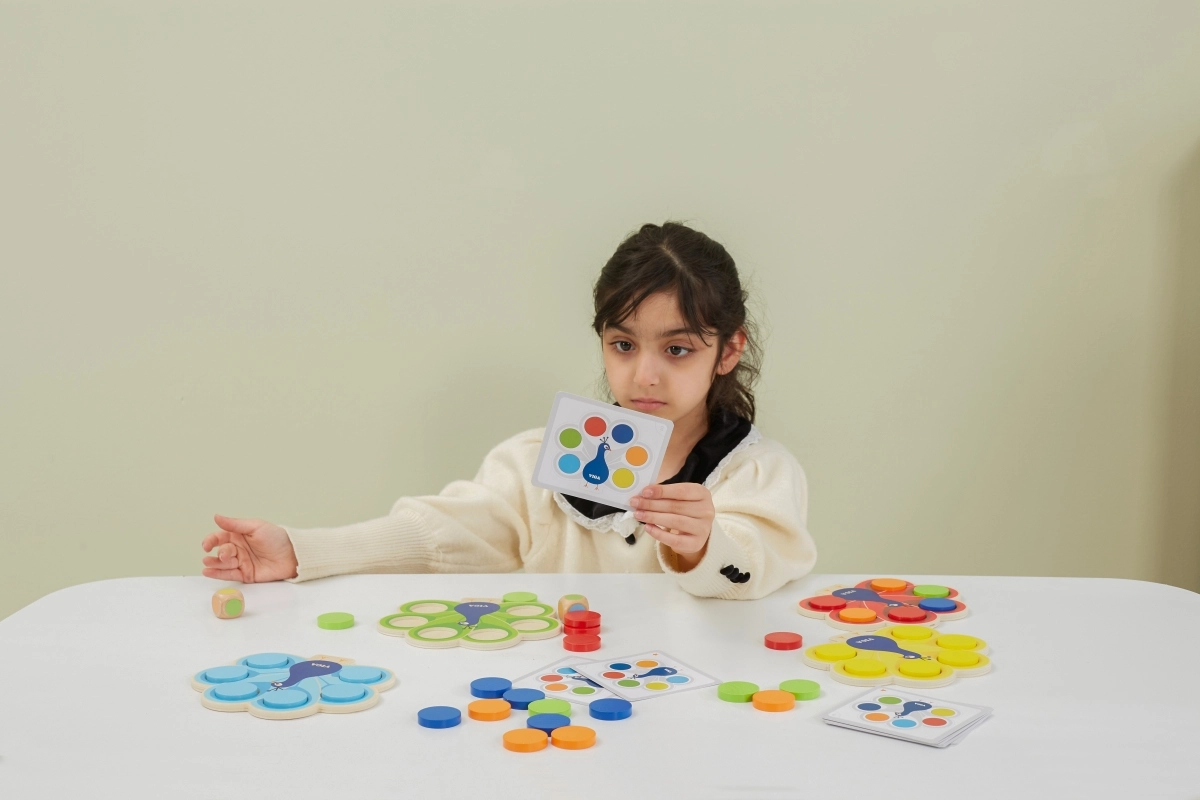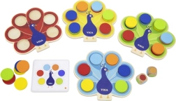 Bērni saskaņo ripuļus pēc kartītēm vai metiena ar kauliņu, dabiski apgūst krāsas un trenē uzmanību un loģiku.