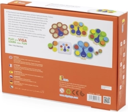 Komplektā ietilpst 4× koka pāva pamatnes, 36 ripuļi 6 krāsās, 20 abpusēju uzdevumu kartīšu un 2 krāsu kauliņi. Spēle veicina gan patstāvīgu, gan komandas darbu un lieliski sagatavo pirmsskolas izglītībai.