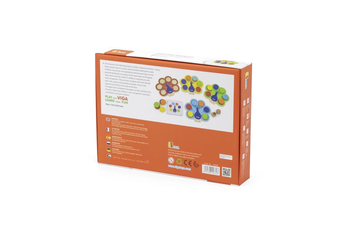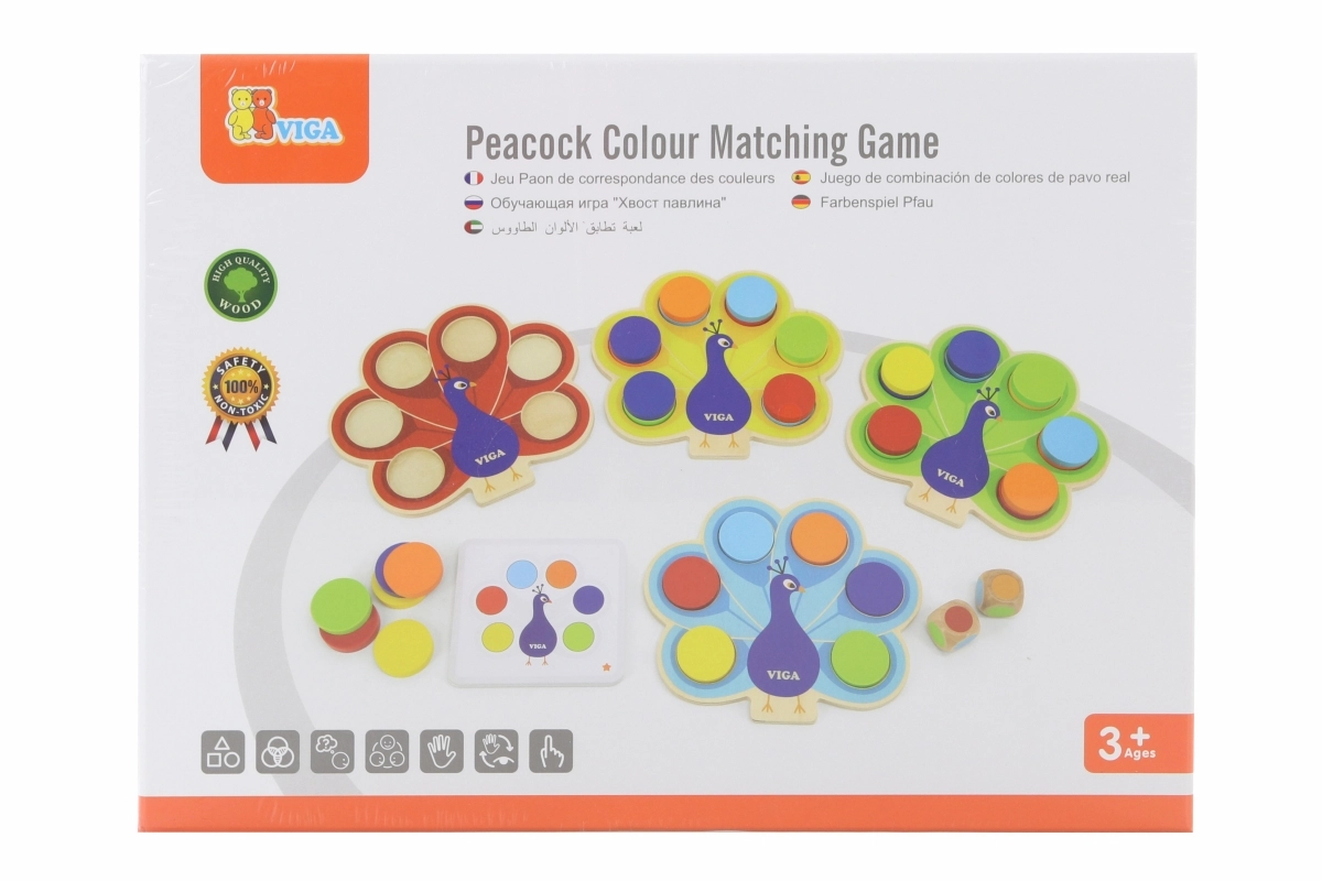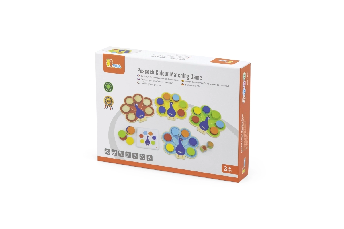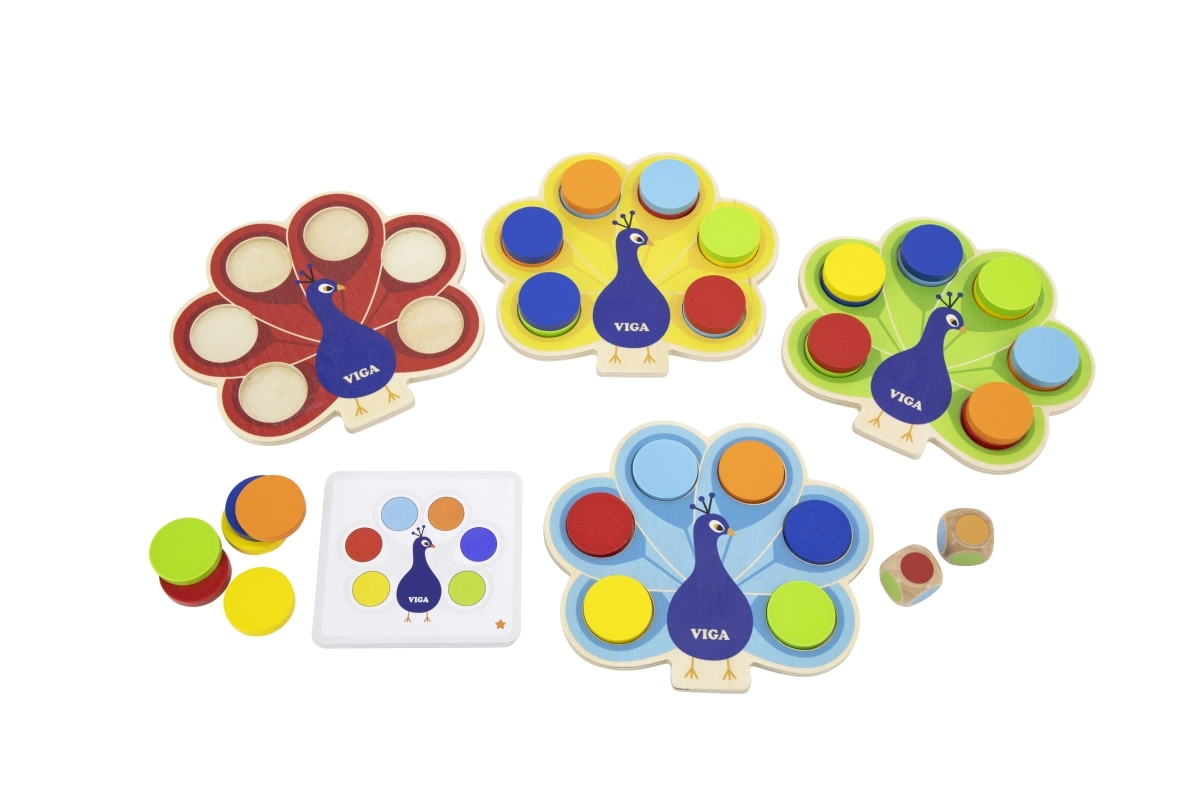 Atklājiet gudri izstrādātu koka spēli, kurā bērni komplektē krāsaino pāva asti. Pēc abpusējām kartītēm vai metiena ar kauliņiem ripuļi tiek ievietoti pareizajos atvērumos, tā nemanāmi tiek trenēta loģiskā domāšana, uzmanība un kustību saskaņošana. Drošais bukakoka izpildījums un netoksiskās krāsas garantē bezrūpīgu izklaidi.
