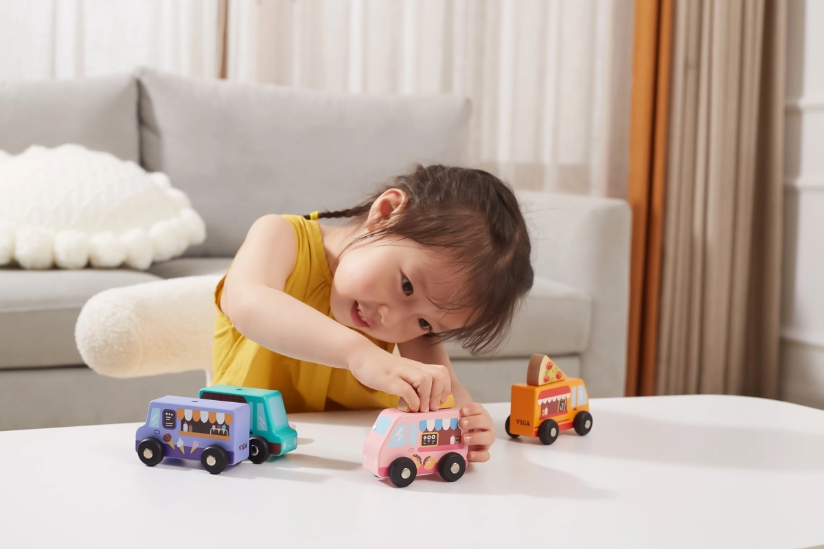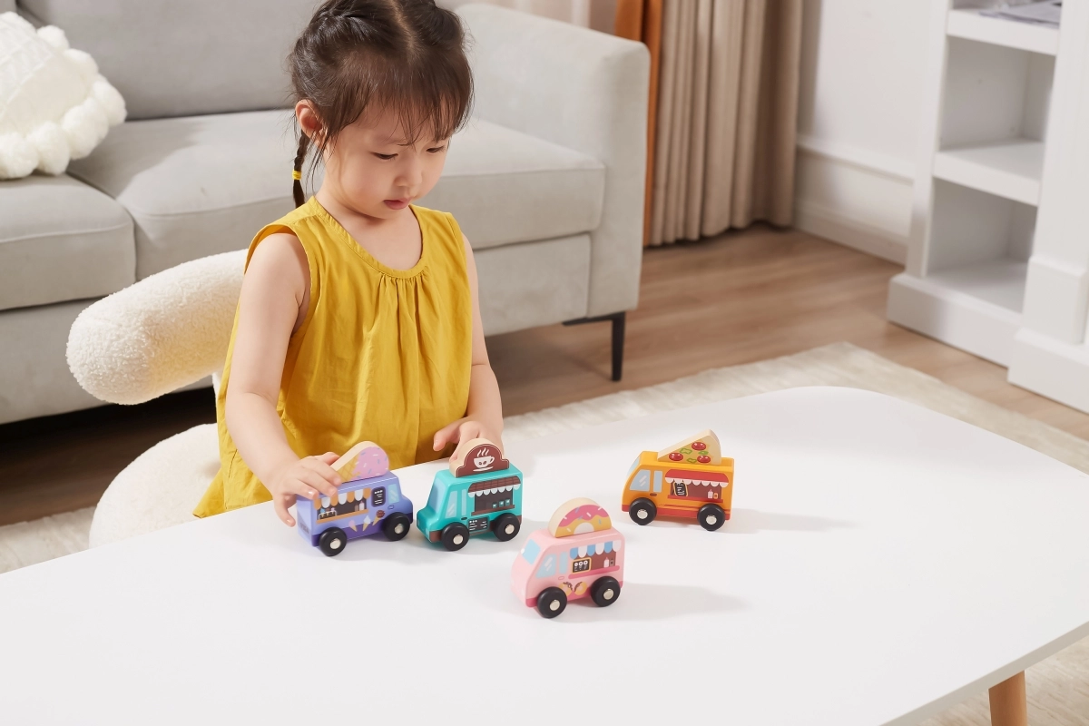 Pateicoties kompaktajam izmēram, mašīnītes ir ērti satveramas arī pašām mazākajām rociņām. Spēle veicina sīko motoriku, koordinācijas prasmes, krāsu atpazīšanu un loģisko domāšanu. Komplekts lieliski papildina bērnu virtuvītes vai rotaļu pilsētas un ir lieliska izvēle kopīgai spēlei ar brāļiem un māsām.