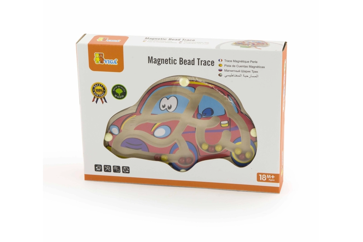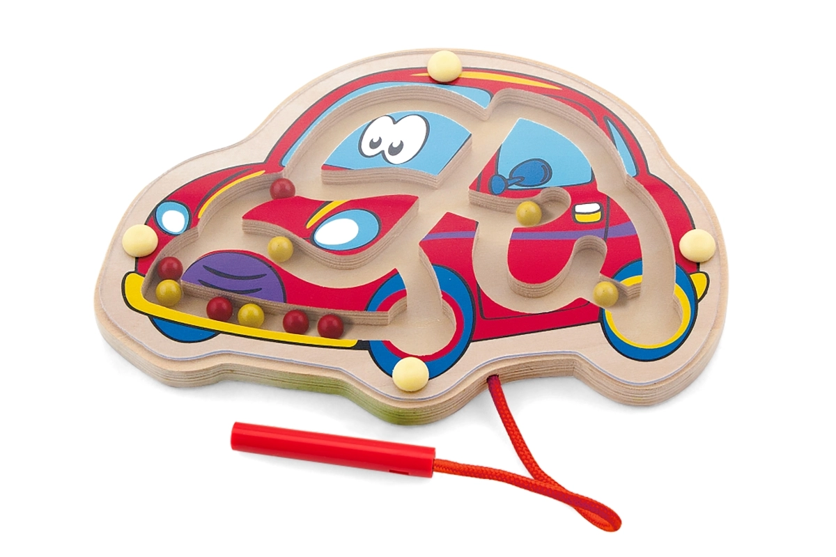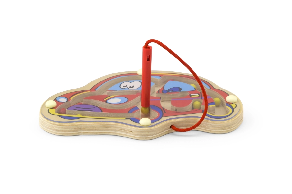 Magnētiskais labirints Automašīna ir lieliska rotaļlieta, kas veicina bērnu acu un roku koordināciju un manuālo veiklību. Ar stingri piestiprinātu magnētisko nūjiņu, ko bērni var droši izmantot.