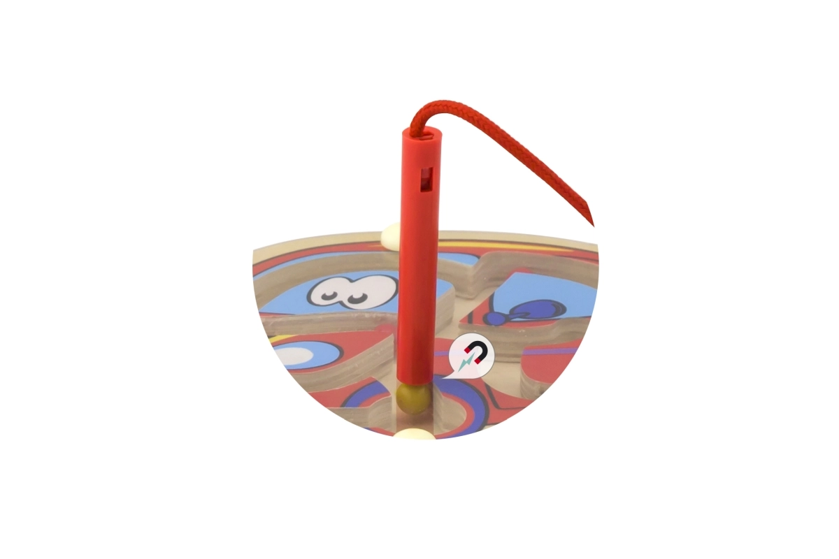 Pateicoties magnētiskajai nūjiņai uz aukliņas, labirintu ir viegli izmantot un nepastāv svarīgu detaļu nozaudēšanas risks.
