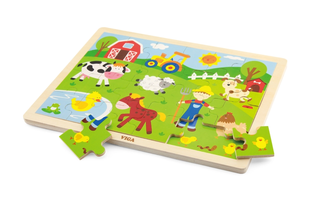 Šī koka puzle ar fermas motīvu ir ideāla bērniem, kuri tikai iepazīstas ar puzļu un galda mīklu pasauli. Fermas attēlojums ir košs un pievilcīgs, aicinot uz rotaļām un mācīšanos. Puzli var
