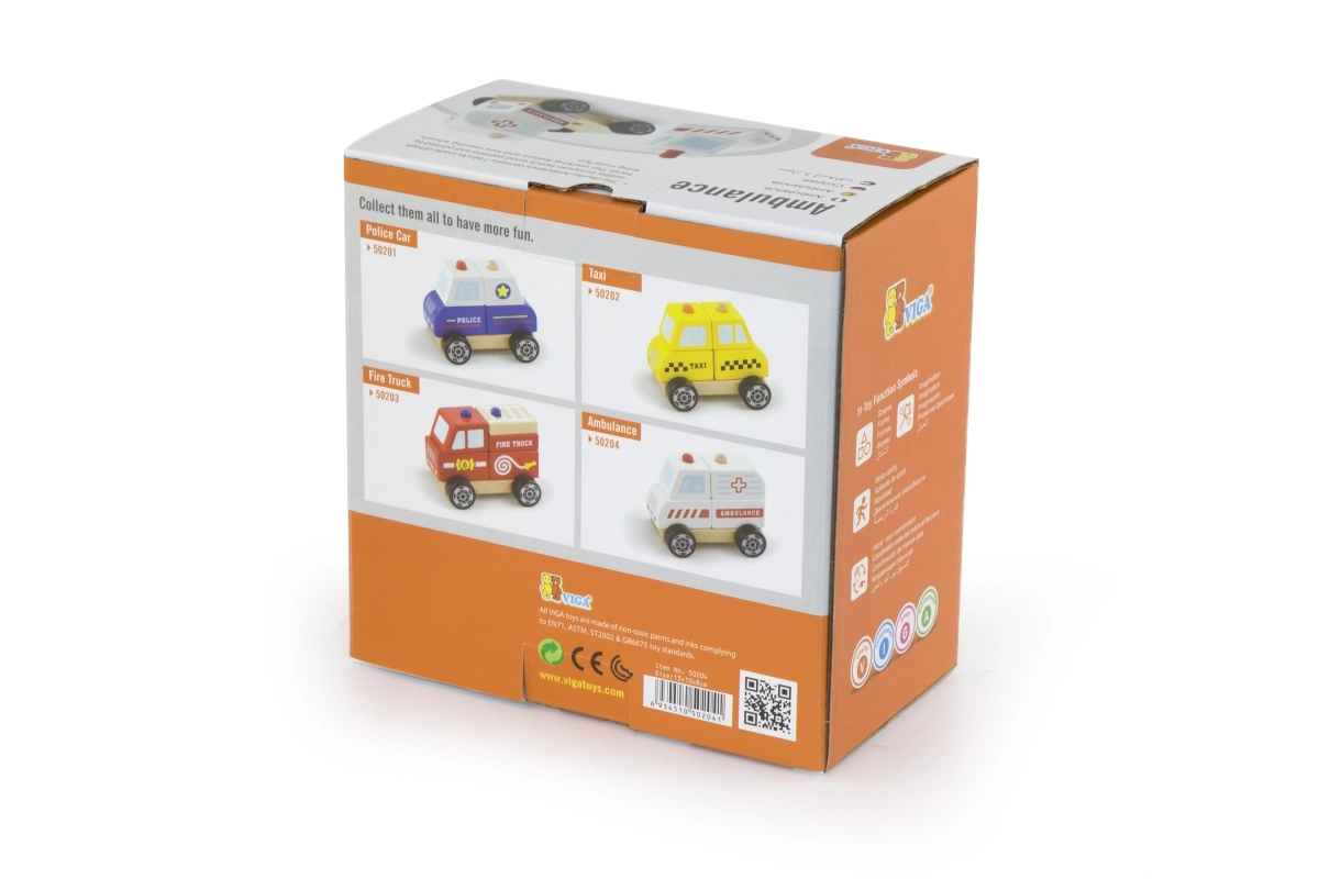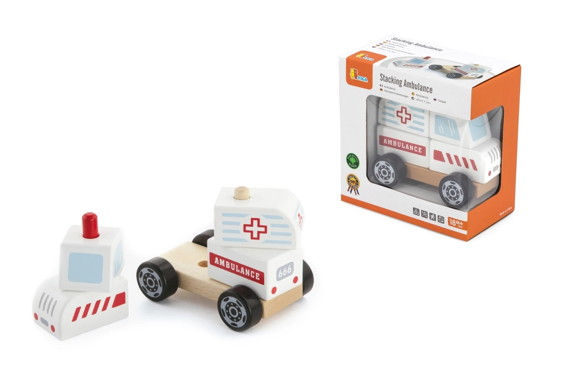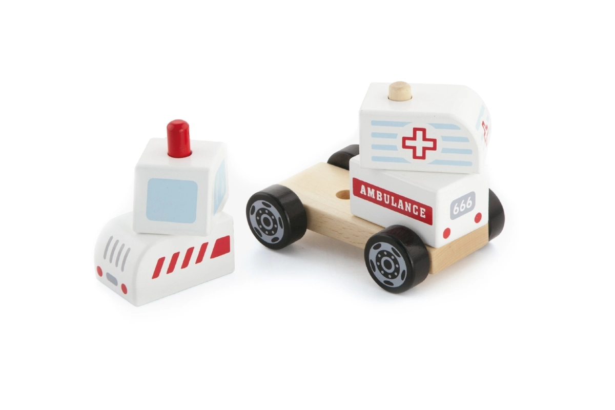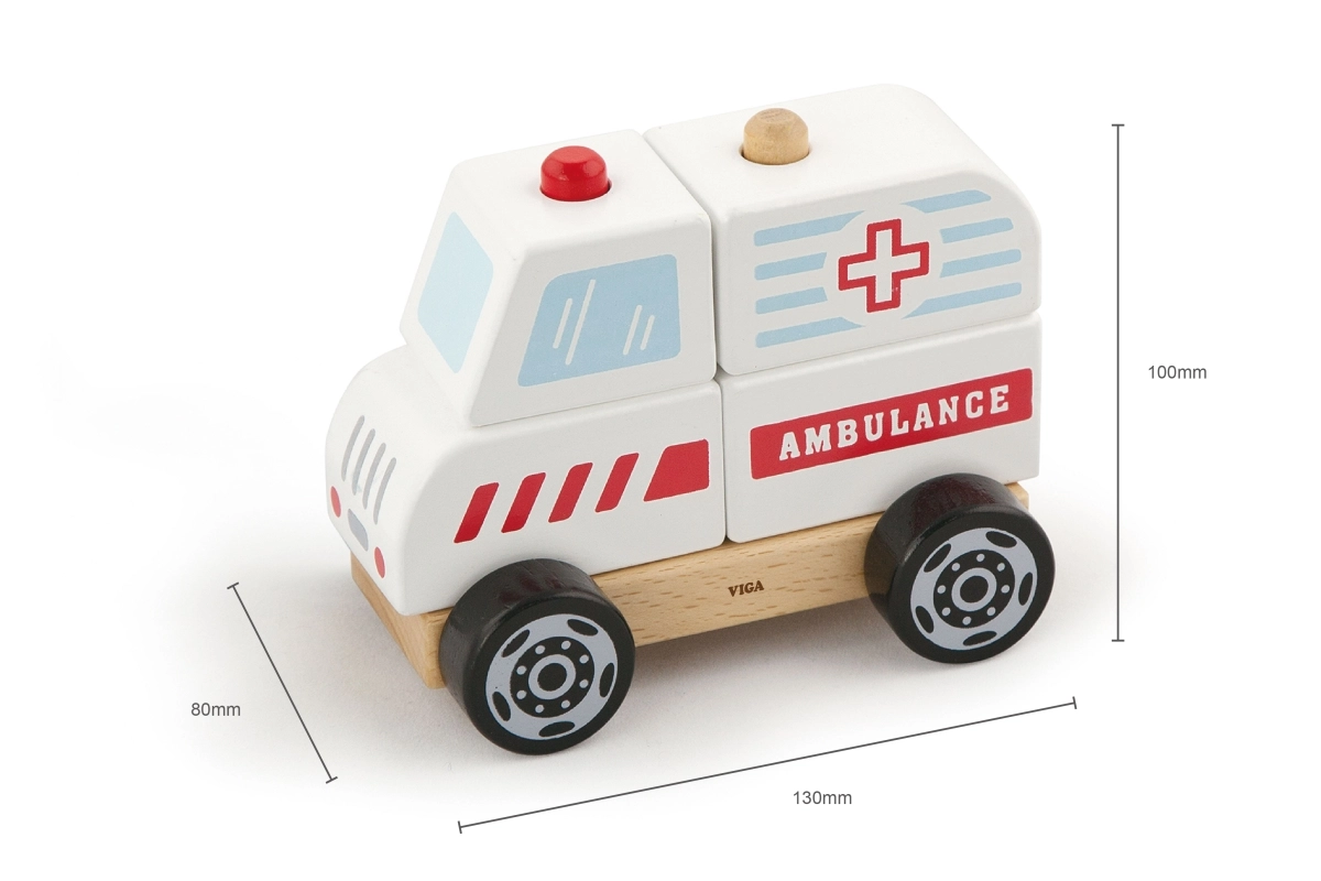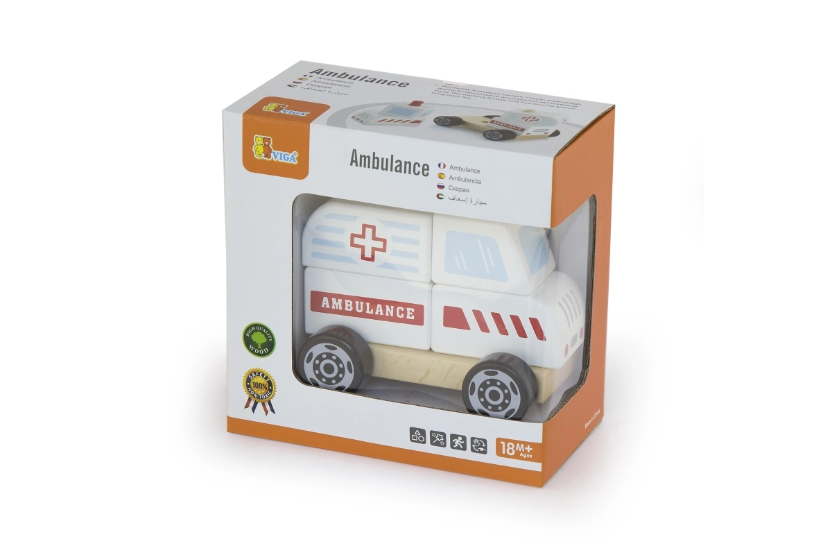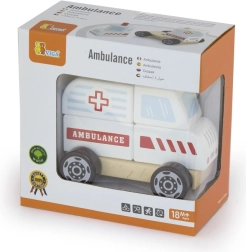 Šī koka ātrās palīdzības mašīna ir lieliska puzles un braucamauto kombinācija. Bērni var salikt atsevišķās detaļas ātrās palīdzības veidolā un pēc tam izbaudīt braukšanu, pateicoties raiti griežamiem riteņiem. Izturīgs koks, kvalitatīvas krāsas un noapaļotas malas nodrošina drošu spēli un ilgu kalpošanas laiku.