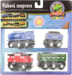 - Dažādas sastāvdaļas: Lokomotīve, tenders, pasažieru un pasta vagoniņš.