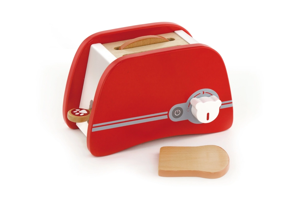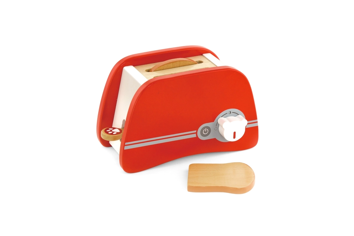 Koka tosteris ir lieliska rotaļlieta bērniem no 3 gadu vecuma, kuri vēlas atdarināt pieaugušos virtuvē. Šis patīkami krāsainais un izturīgais tosteris ļauj bērniem ievietot koka grauzdiņus un iestatīt taimeri, kas nodrošina, ka grauzdiņš izlec kā īsts. Tostera izmēri ir pielāgoti mazām bērnu rokām, kas padara to par ideālu rīku sīkās motorikas un iztēles attīstīšanai.