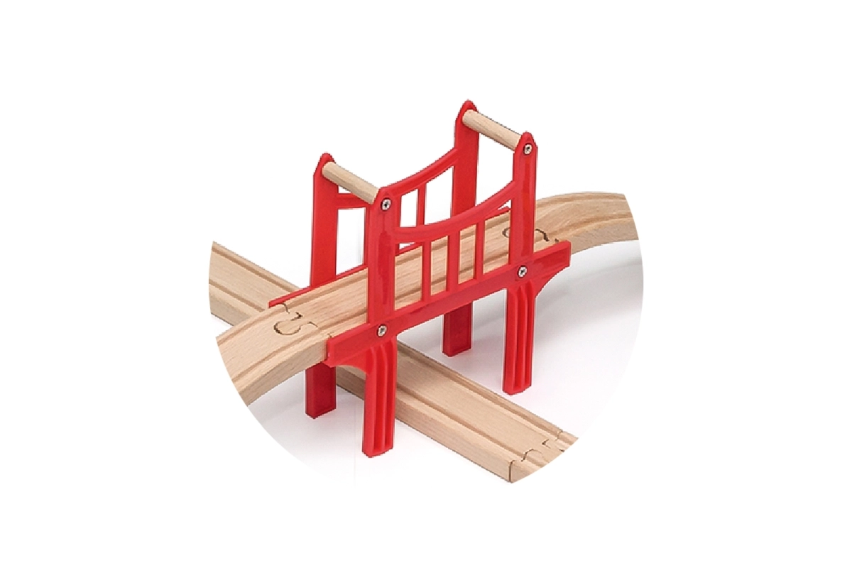 Komplektā iekļauts sarkans tilts, kas lieliski noder paaugstinātu trases posmu veidošanai vēl aizraujošākai spēlei.