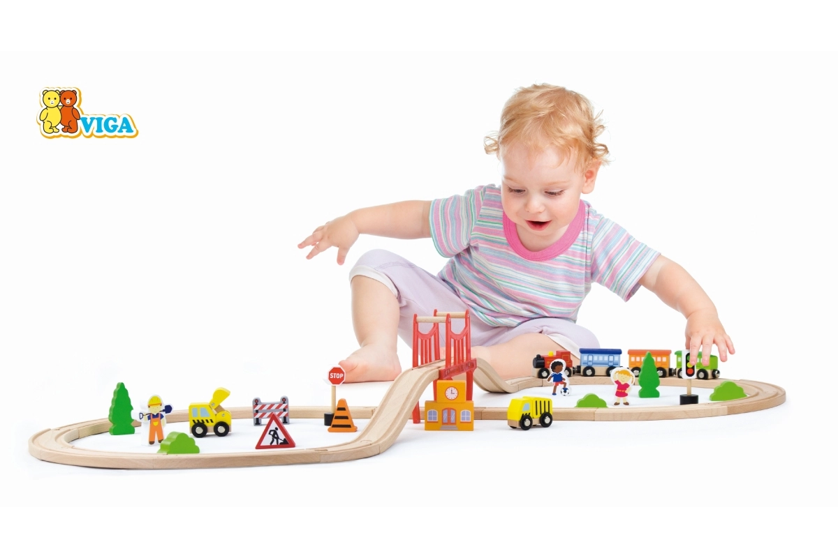 Spēlēšanās ar vilciena trasi palīdz attīstīt sīko motoriku un roku-acu koordināciju.