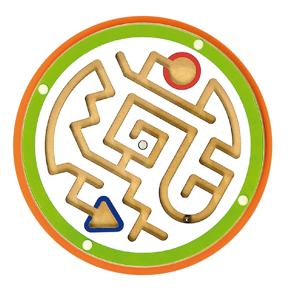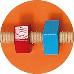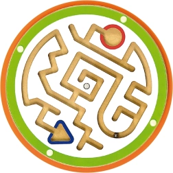 Labirints ar lodīti un skrūvītes ar vītni trenē pirkstu precizitāti, satvērienu un acu–roku koordināciju. Bērni bīda lodīti, vingrinot pacietību un koncentrēšanos.